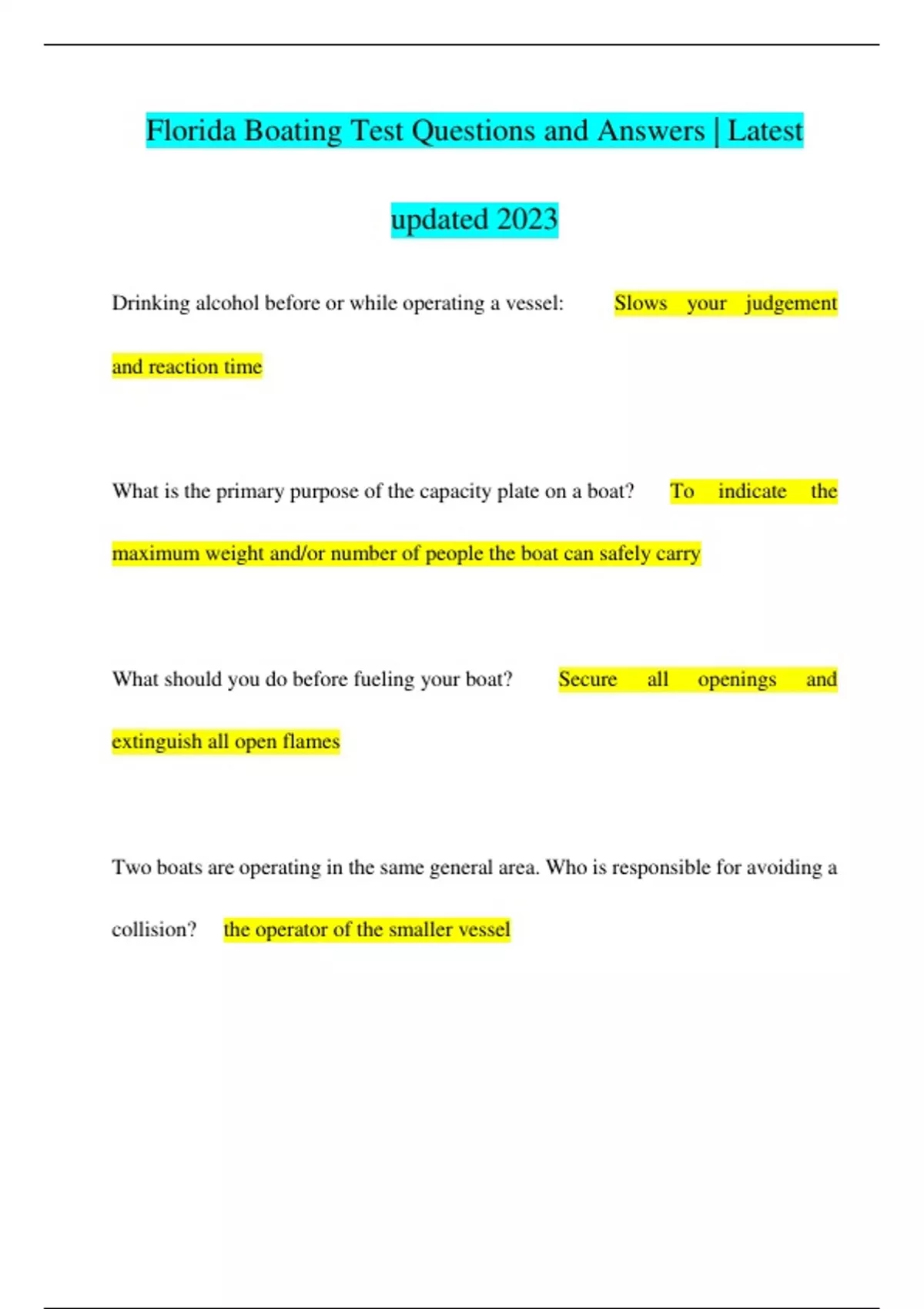 Florida Boating Test Questions and Answers | Latest updated 2023