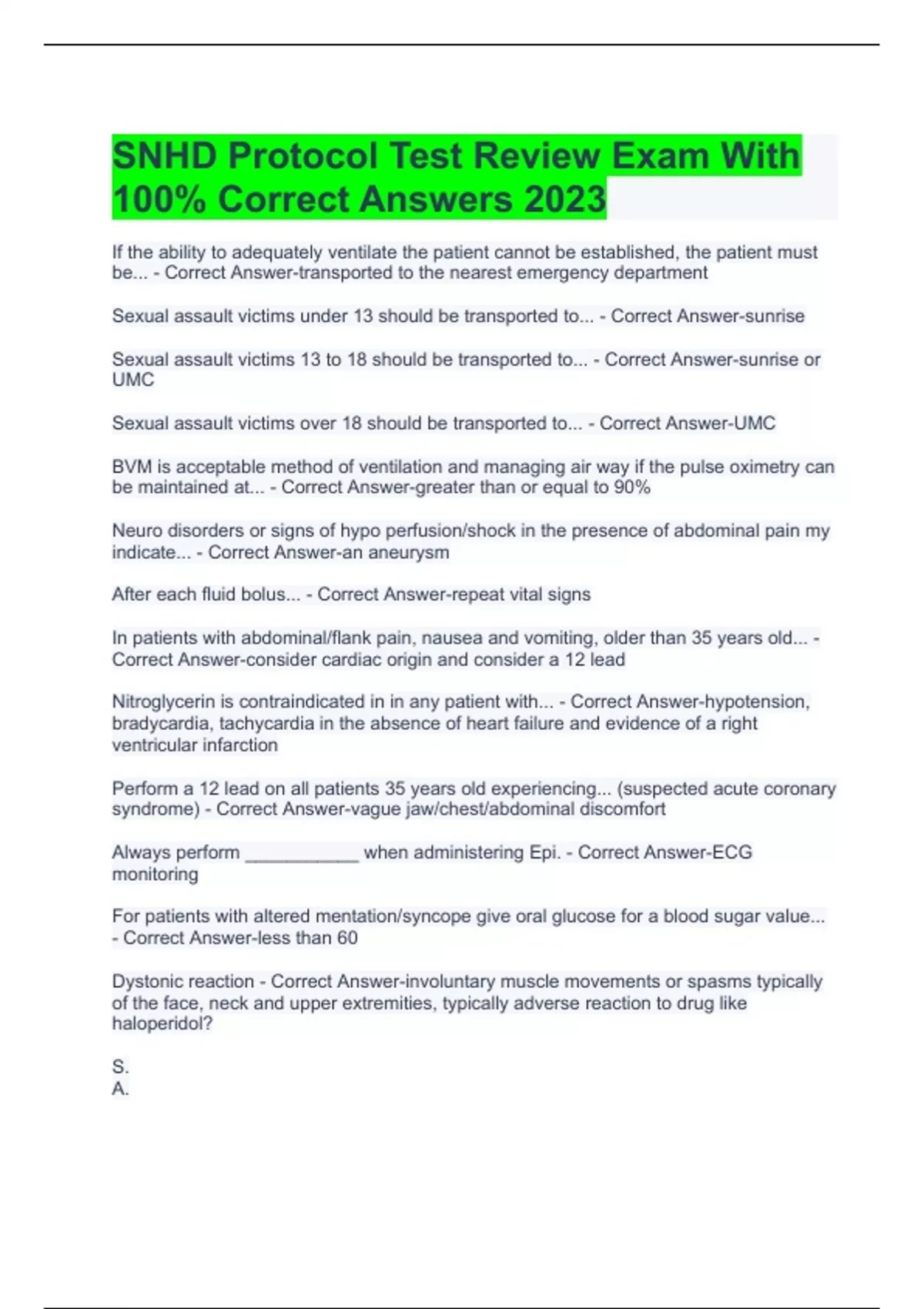 SNHD Protocol Test Review Exam With 100% Correct Answers 2023