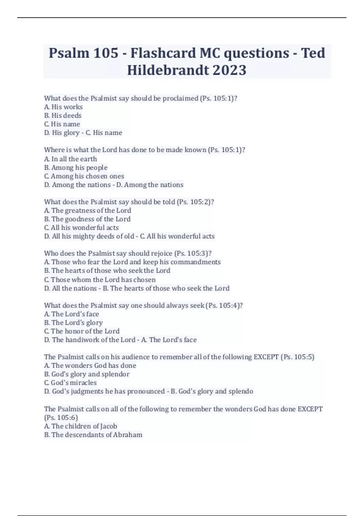 Psalm 105 - Flashcard MC questions - Ted Hildebrandt 2023