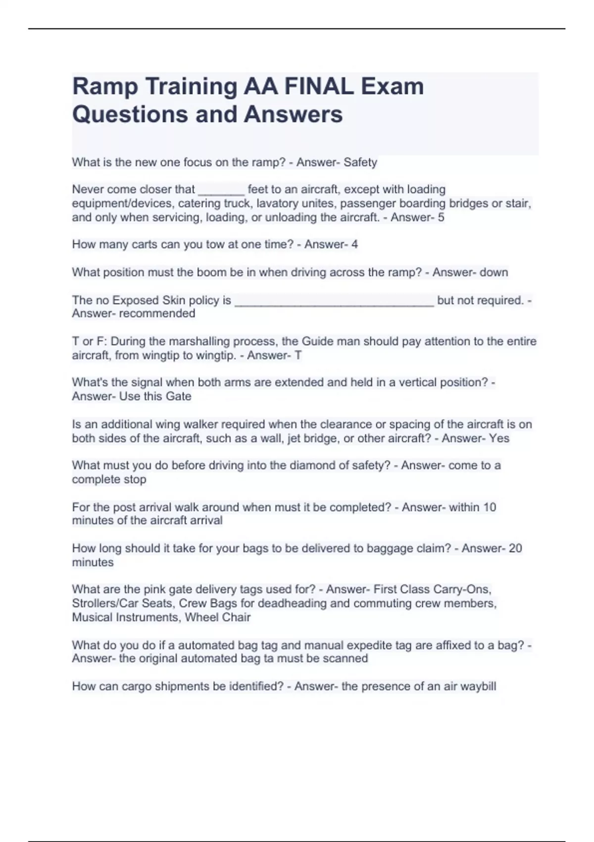 Ramp Training AA FINAL Exam Questions and Answers