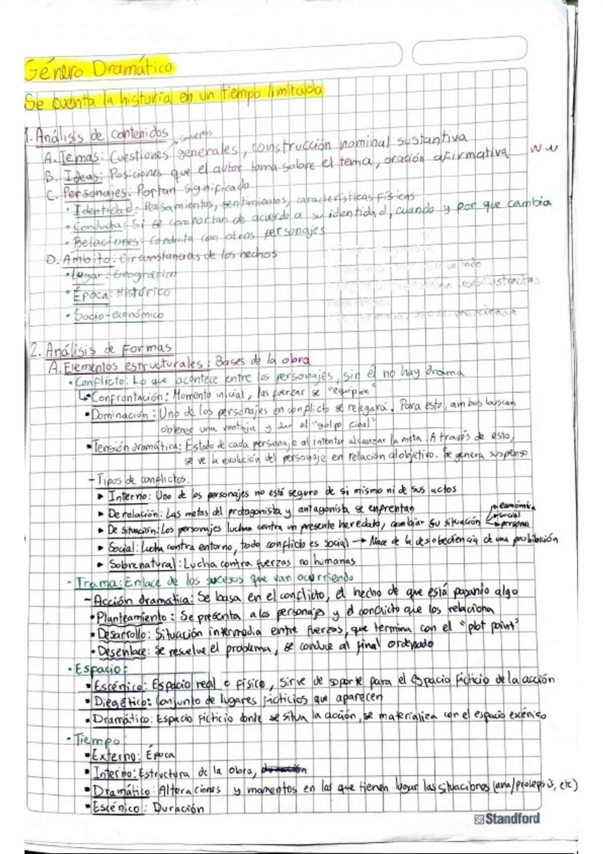 Notas de análisis literario de tipo dramático, cubre estructura, contenido morfológico y de forma. Explica las partes más necesarias de este tipo de análisis.