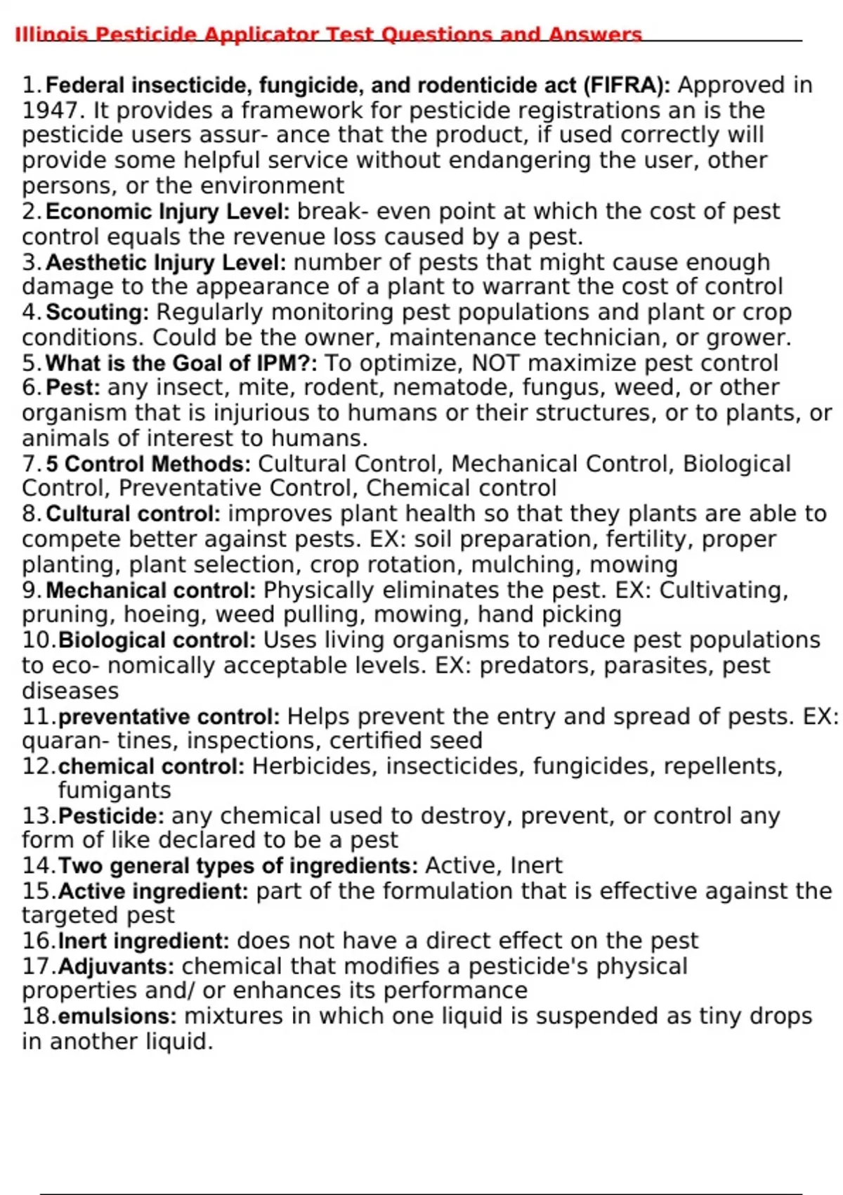 Illinois Pesticide Applicator Test Questions and Answers