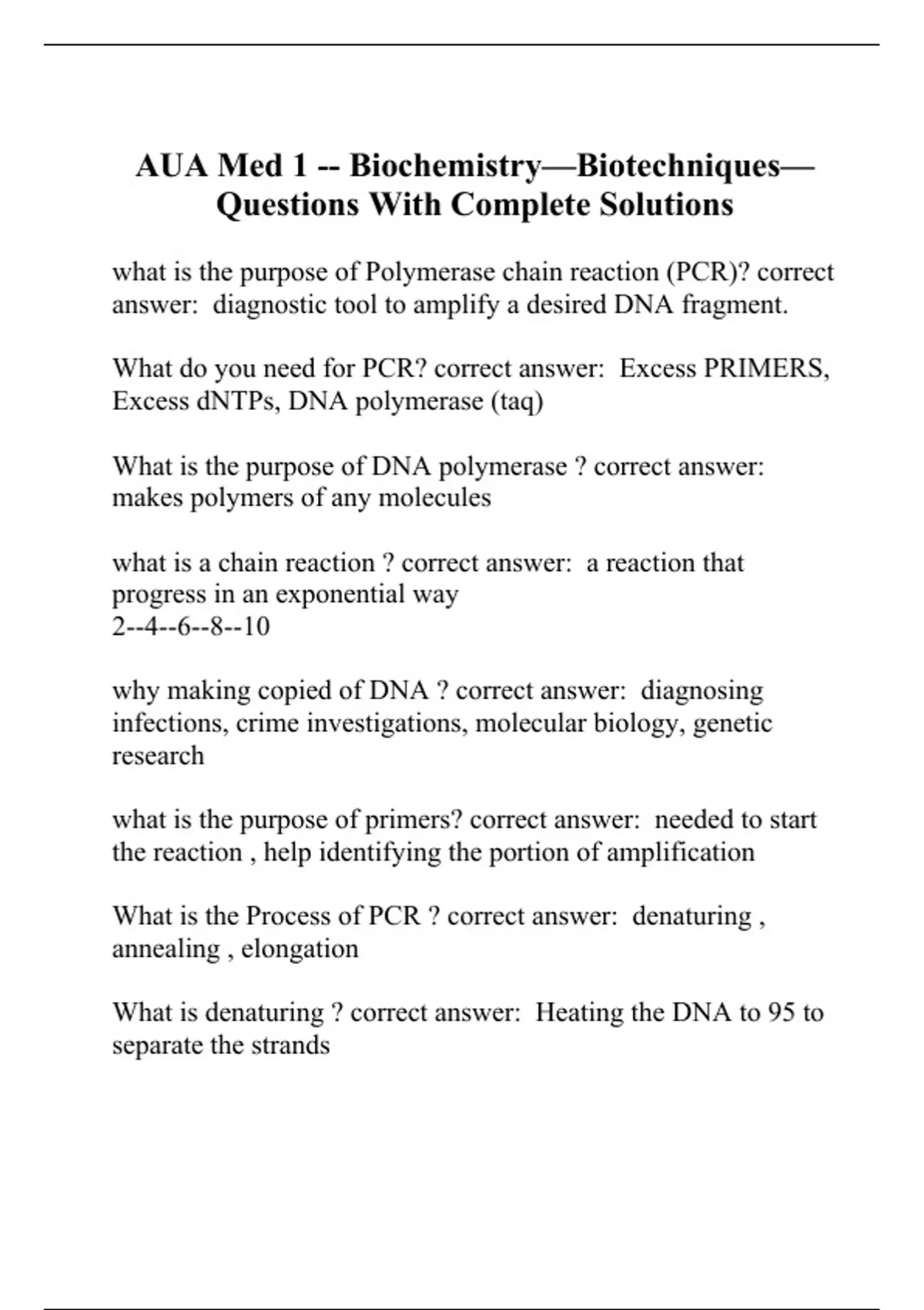 AUA Med 1 -- Biochemistry—Biotechniques—Questions With Complete Solutions
