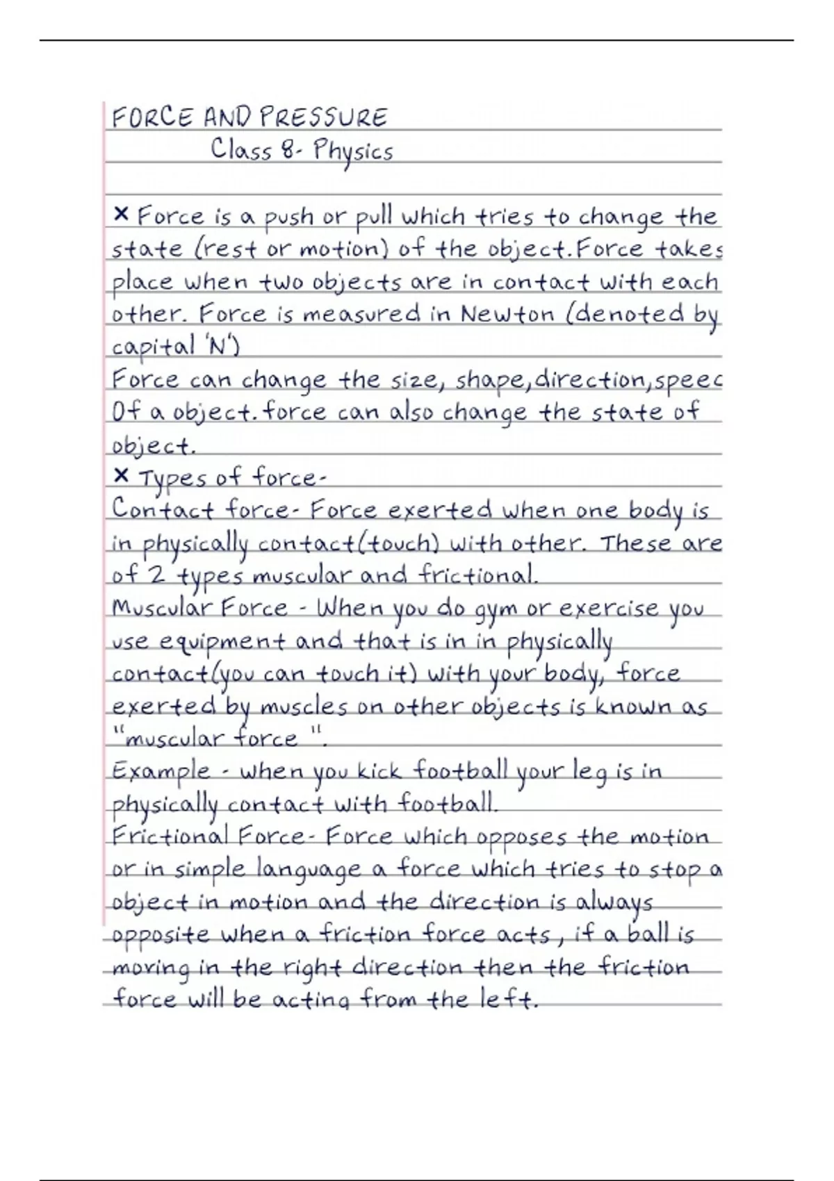 Class 8 physics Force and Pressure