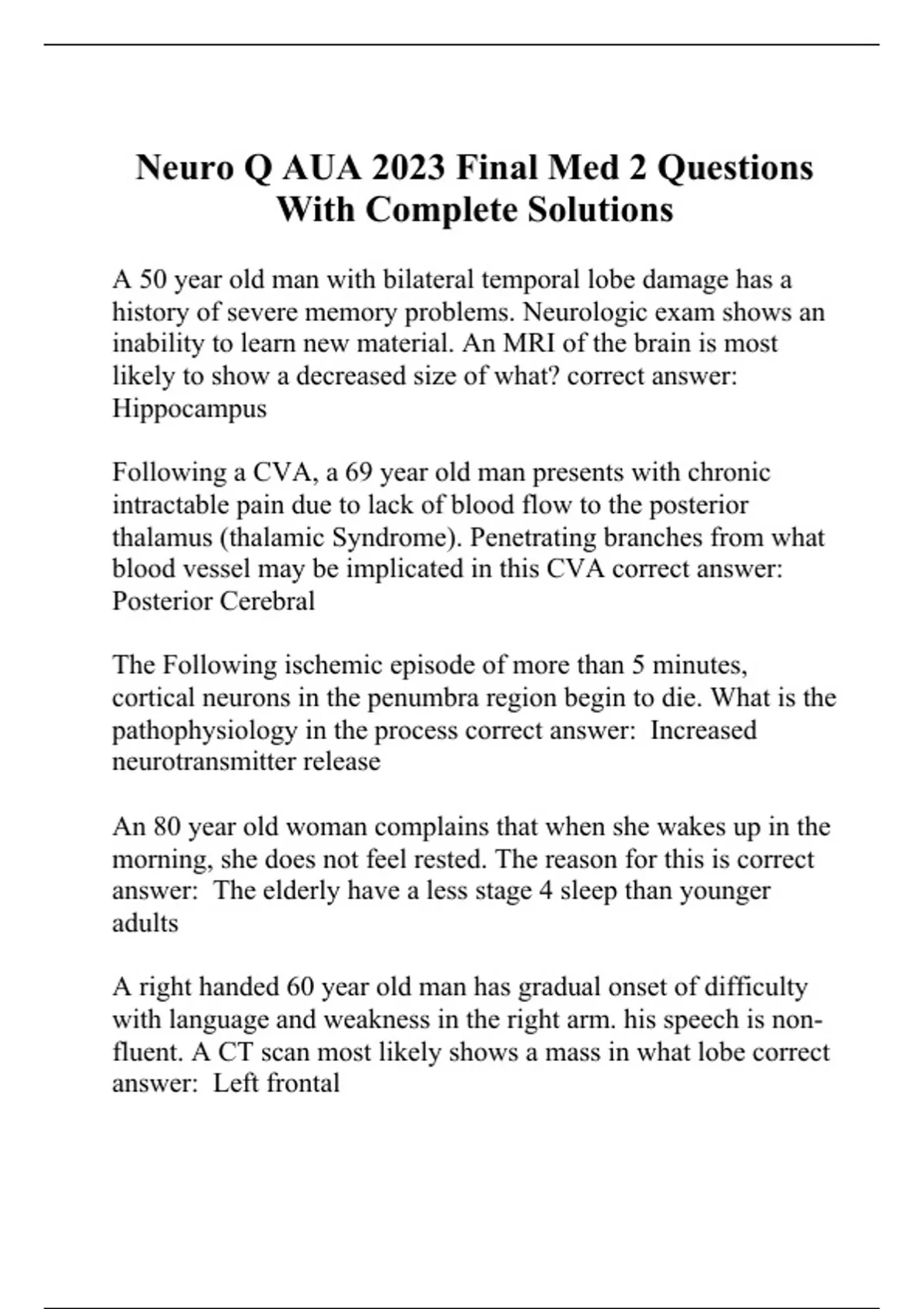 Neuro Q AUA 2023 Final Med 2 Questions With Complete Solutions