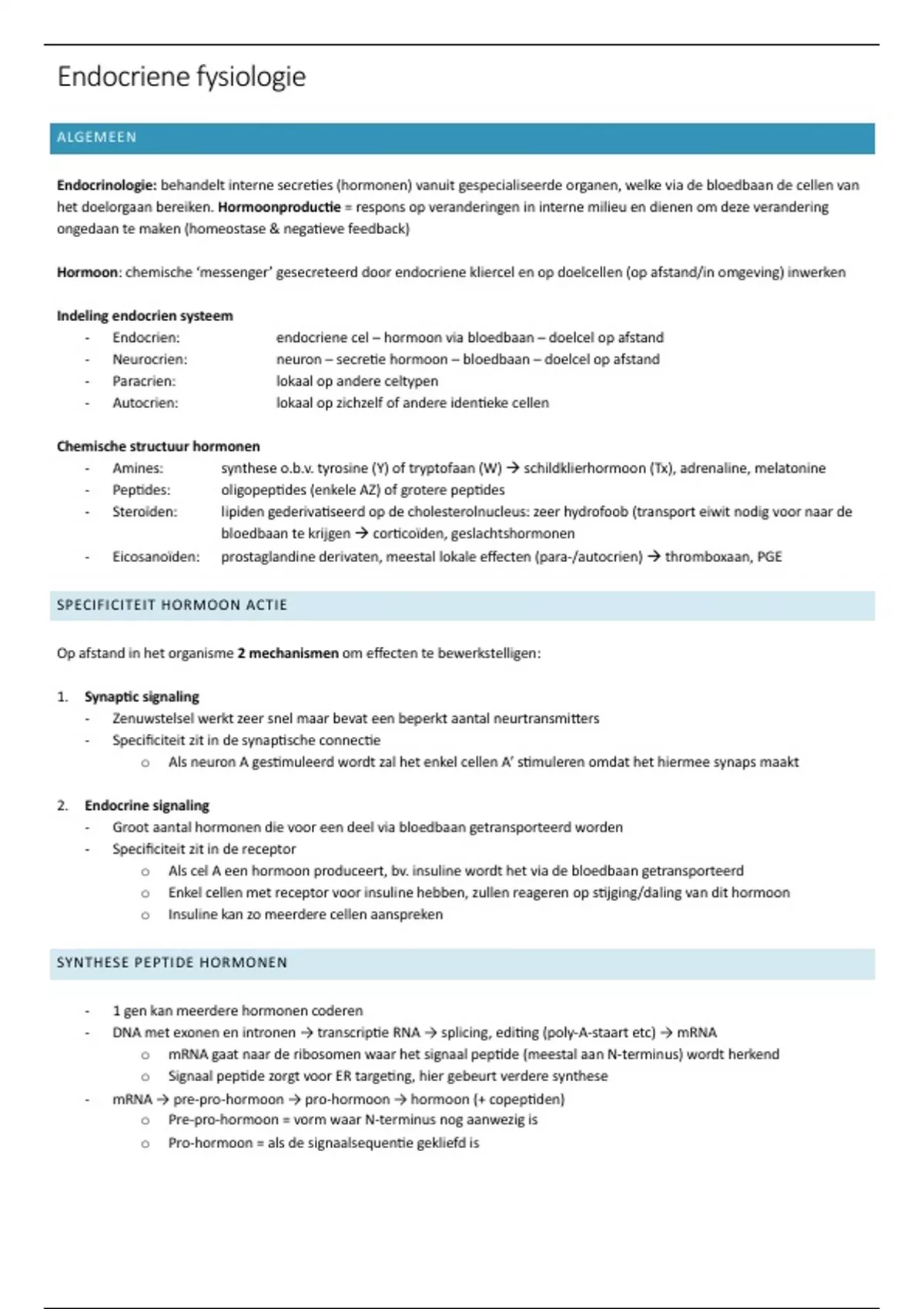 o Pre-pro-hormoon = vorm waar N-terminus nog aanwezig is