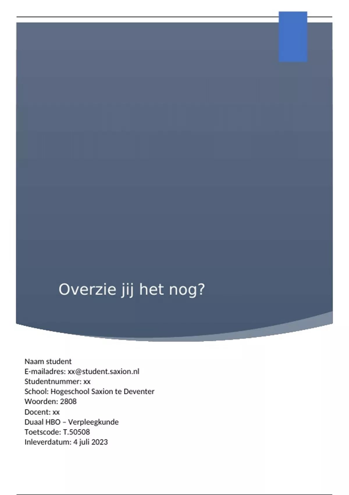 Februari 2022 ben ik gestart met de deeltijd opleiding verpleegkunde op Hogeschool Saxion te