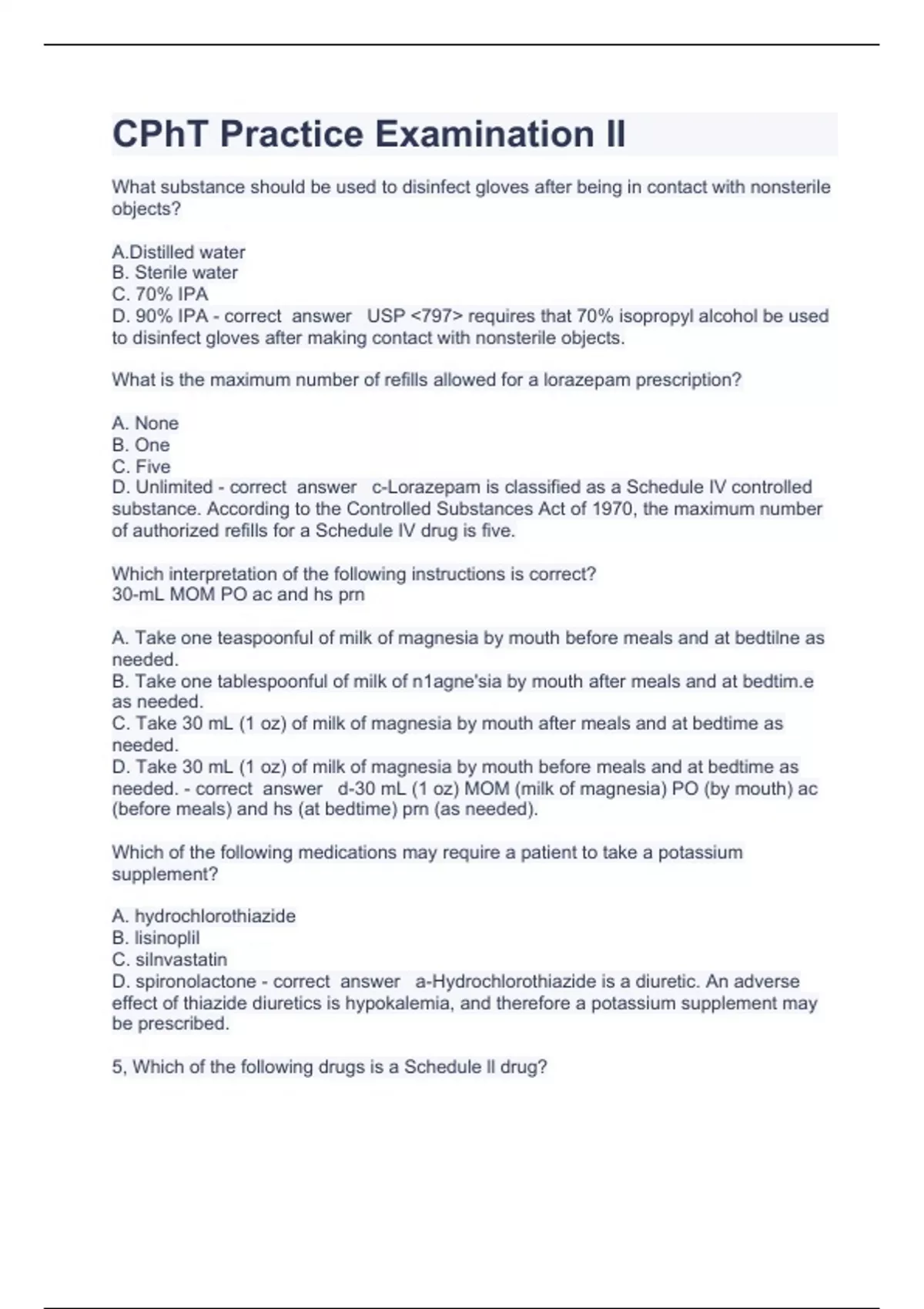 cpht practice examination ii question and answers