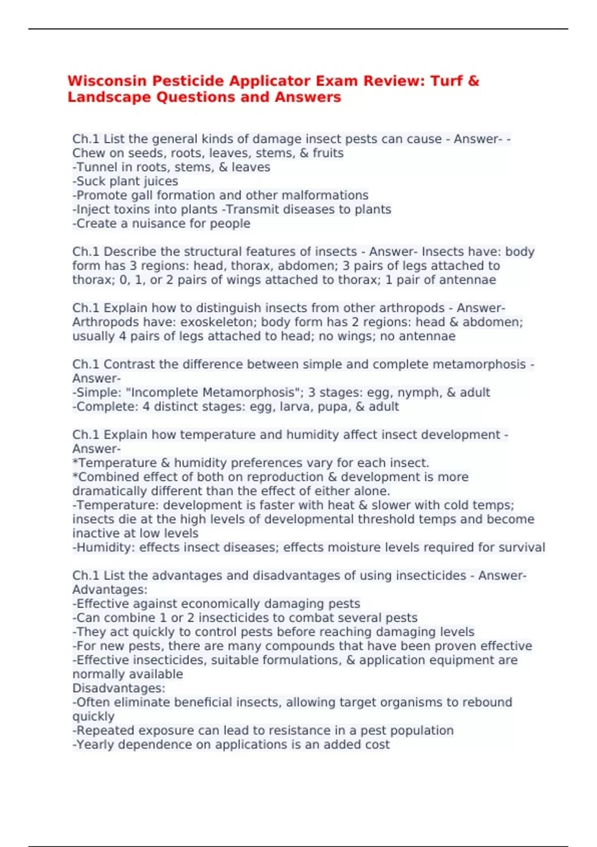 Wisconsin Pesticide Applicator Exam Review: Turf & Landscape Questions and Answers
