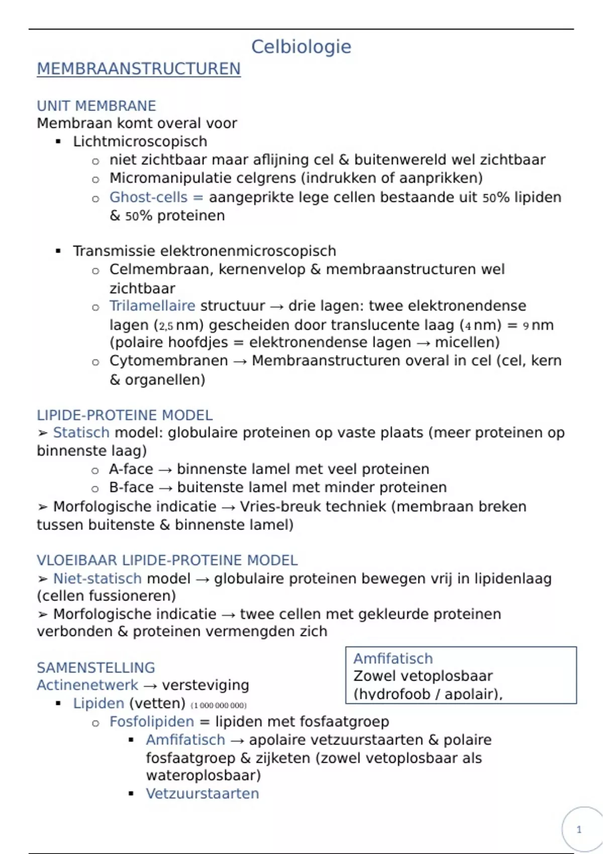 o Cytomembranen → Membraanstructuren overal in cel (cel, kern
