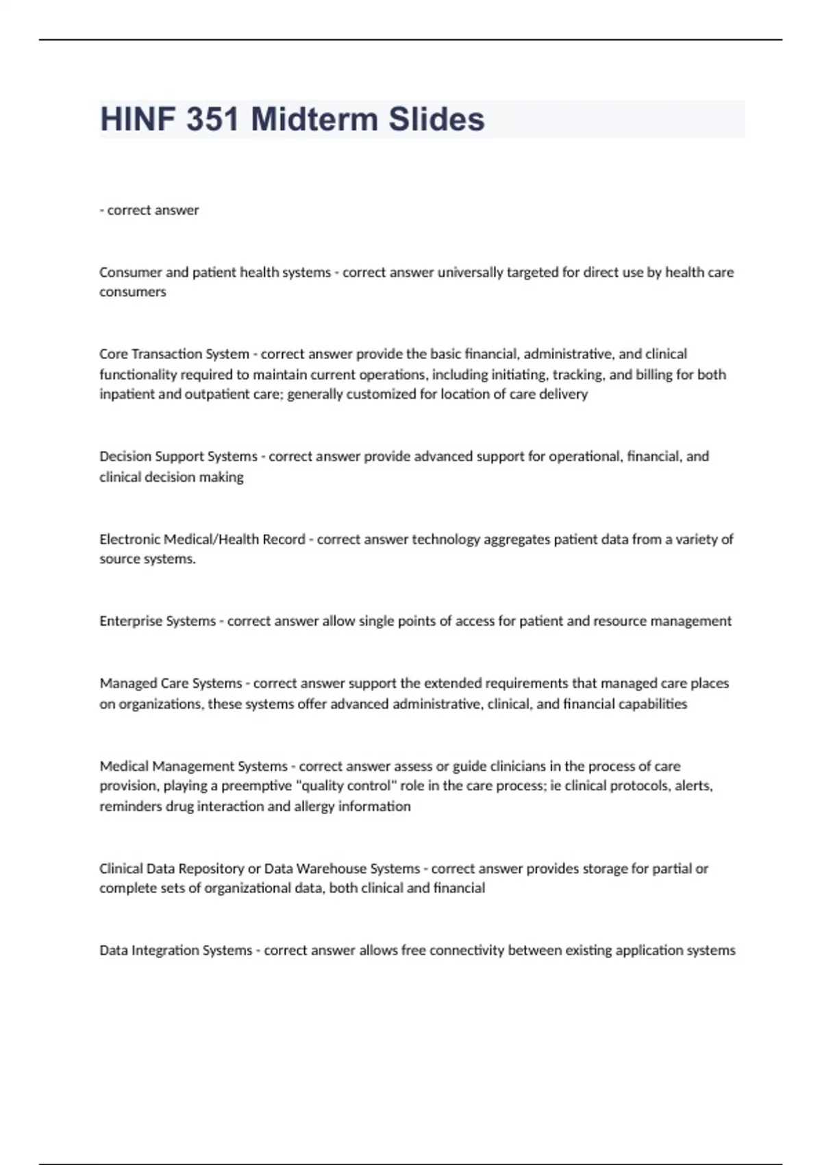 HINF 351 Midterm Slides question n answers 2023