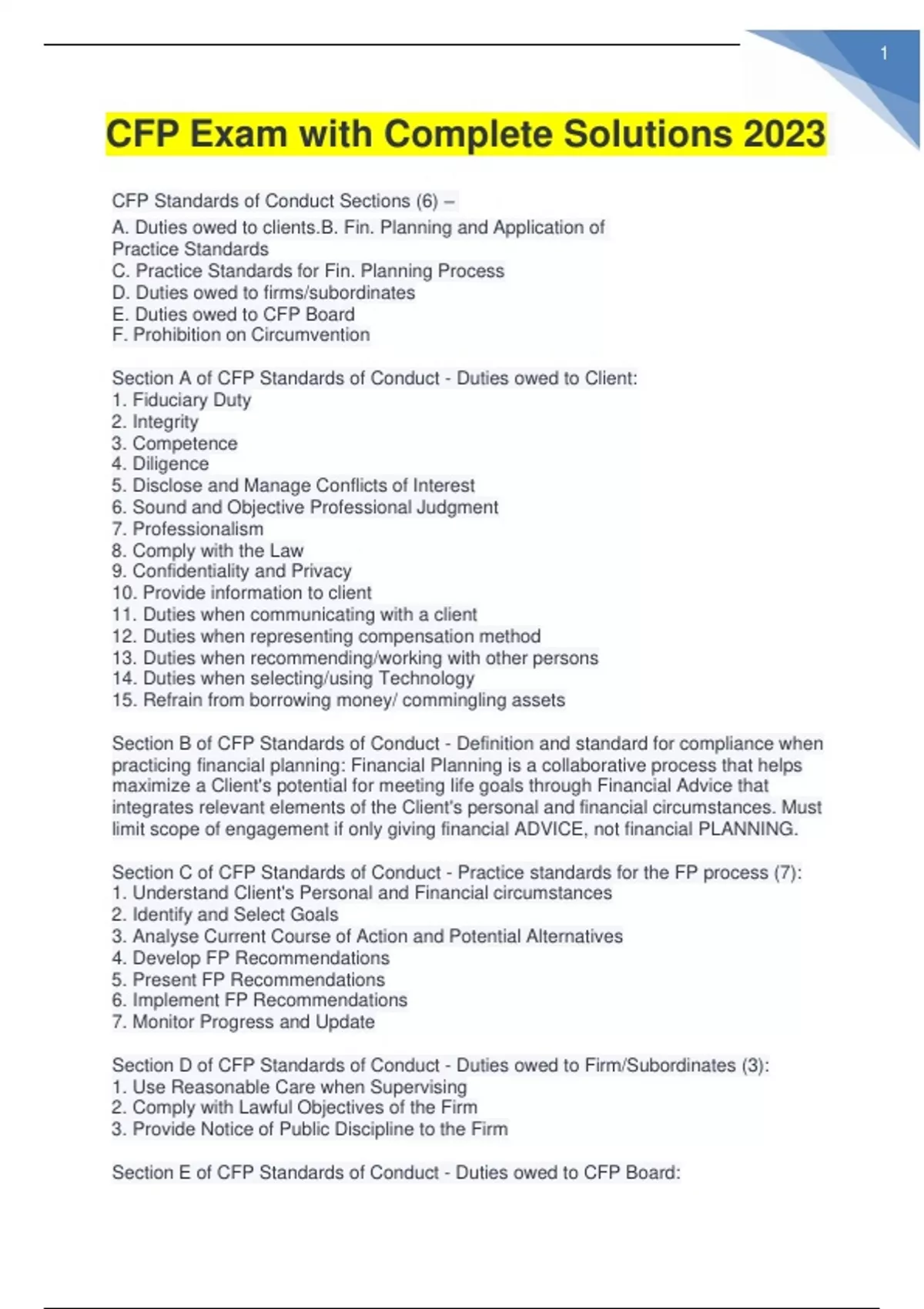 cfp exam with complete solutions 2023