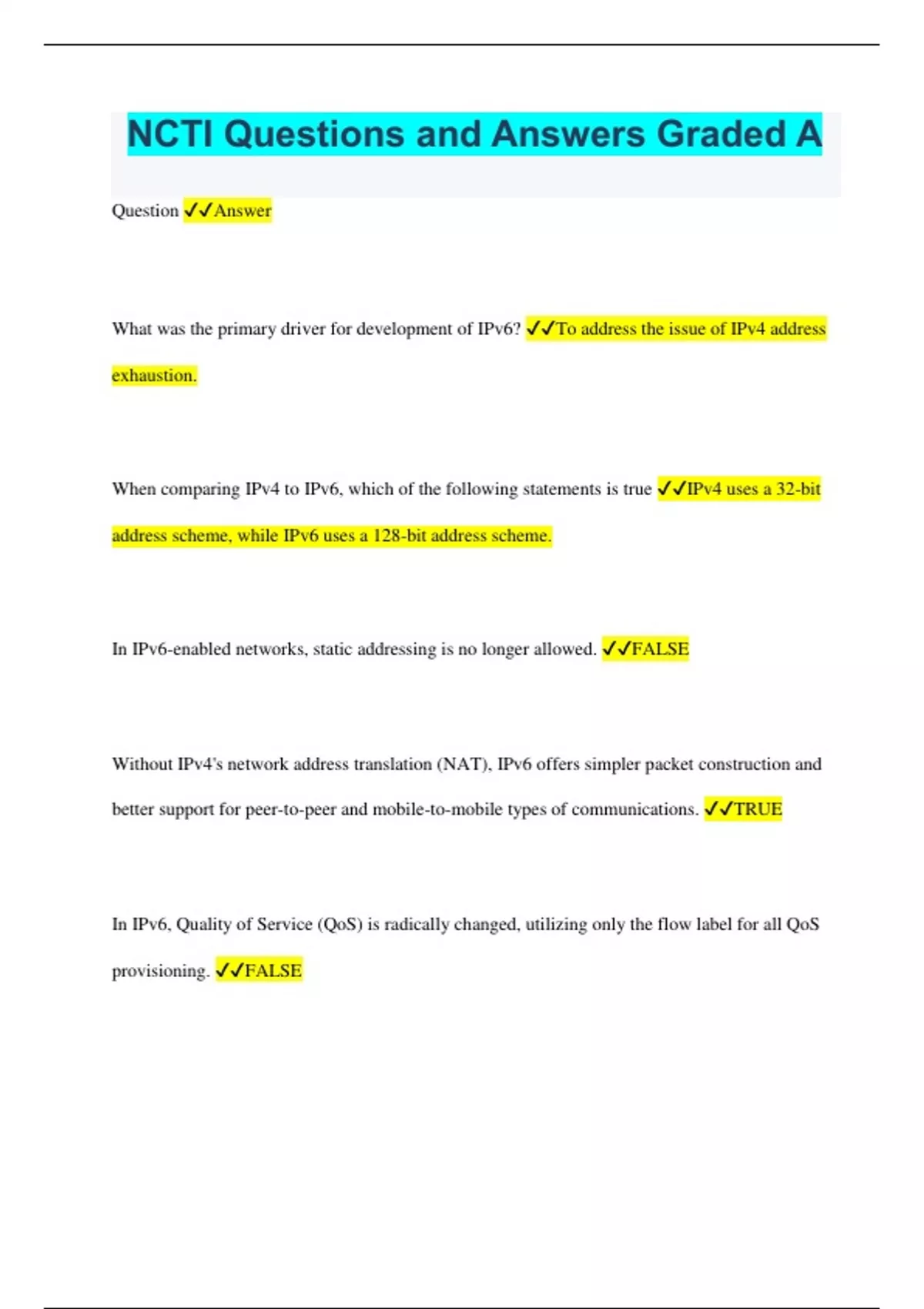 NCTI Questions and Answers Graded A