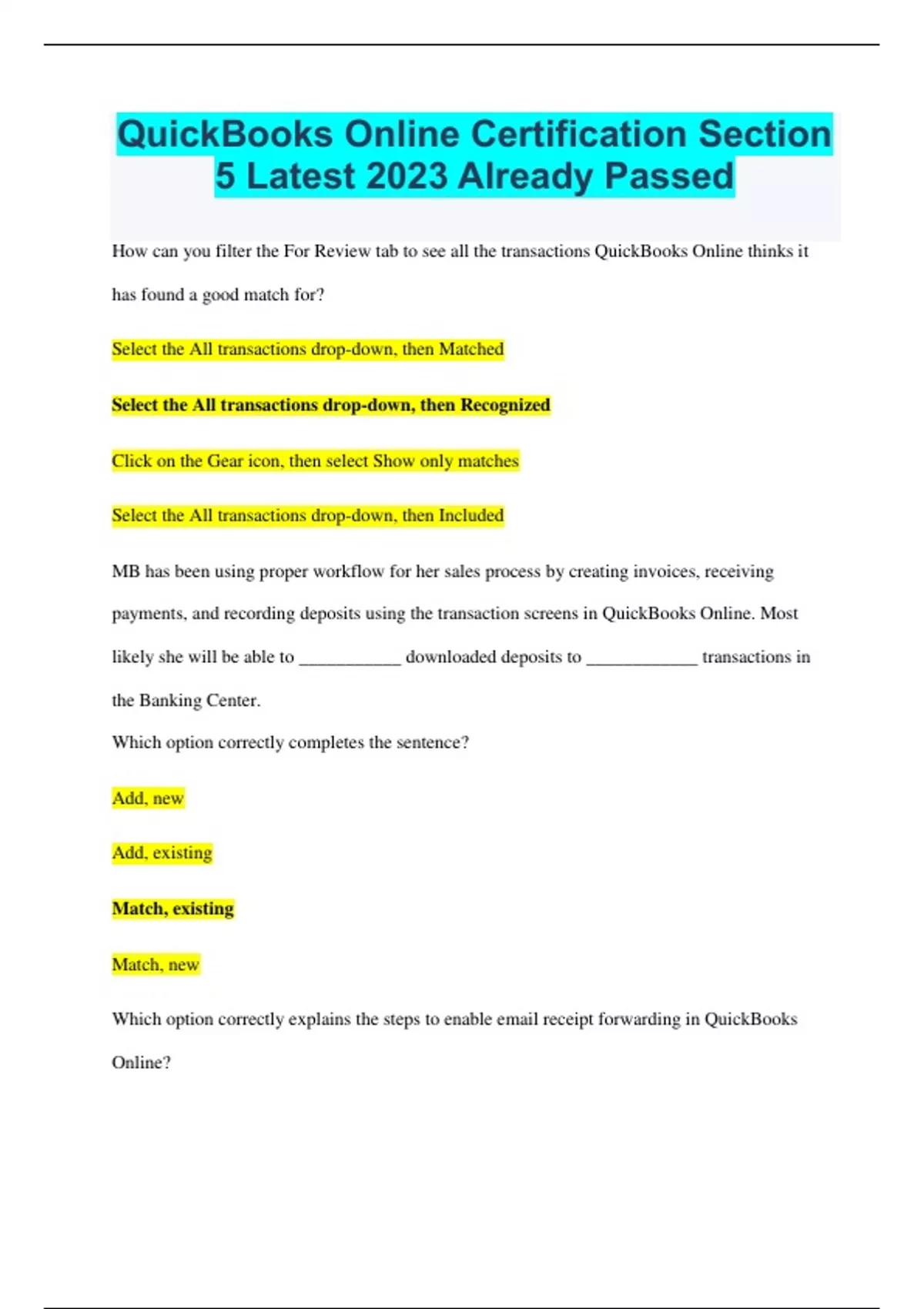 QuickBooks Online Certification Section 5 Latest 2023 Already Passed