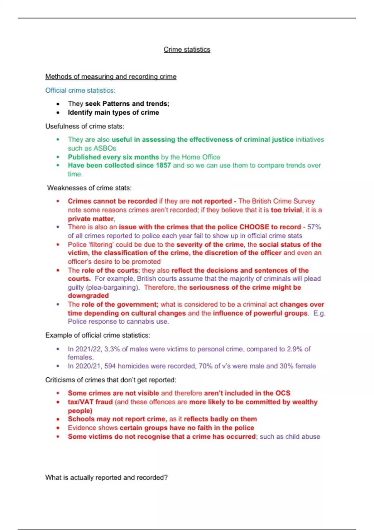  Crimes cannot be recorded if they are not reported - The British Crime Survey