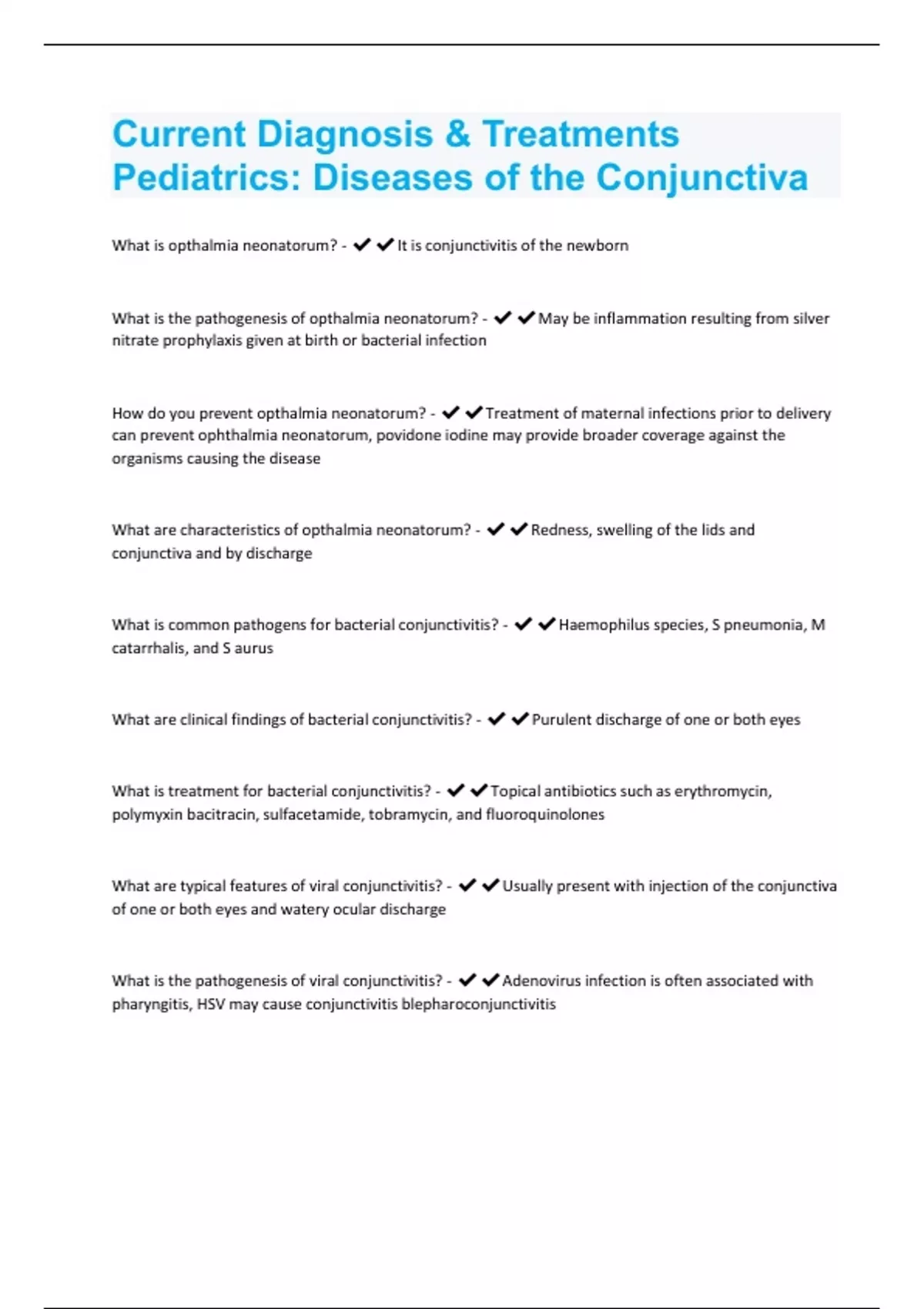 Current Diagnosis & Treatments Pediatrics: Diseases of the Conjunctiva Questions and Answers(A+ Solution guide)