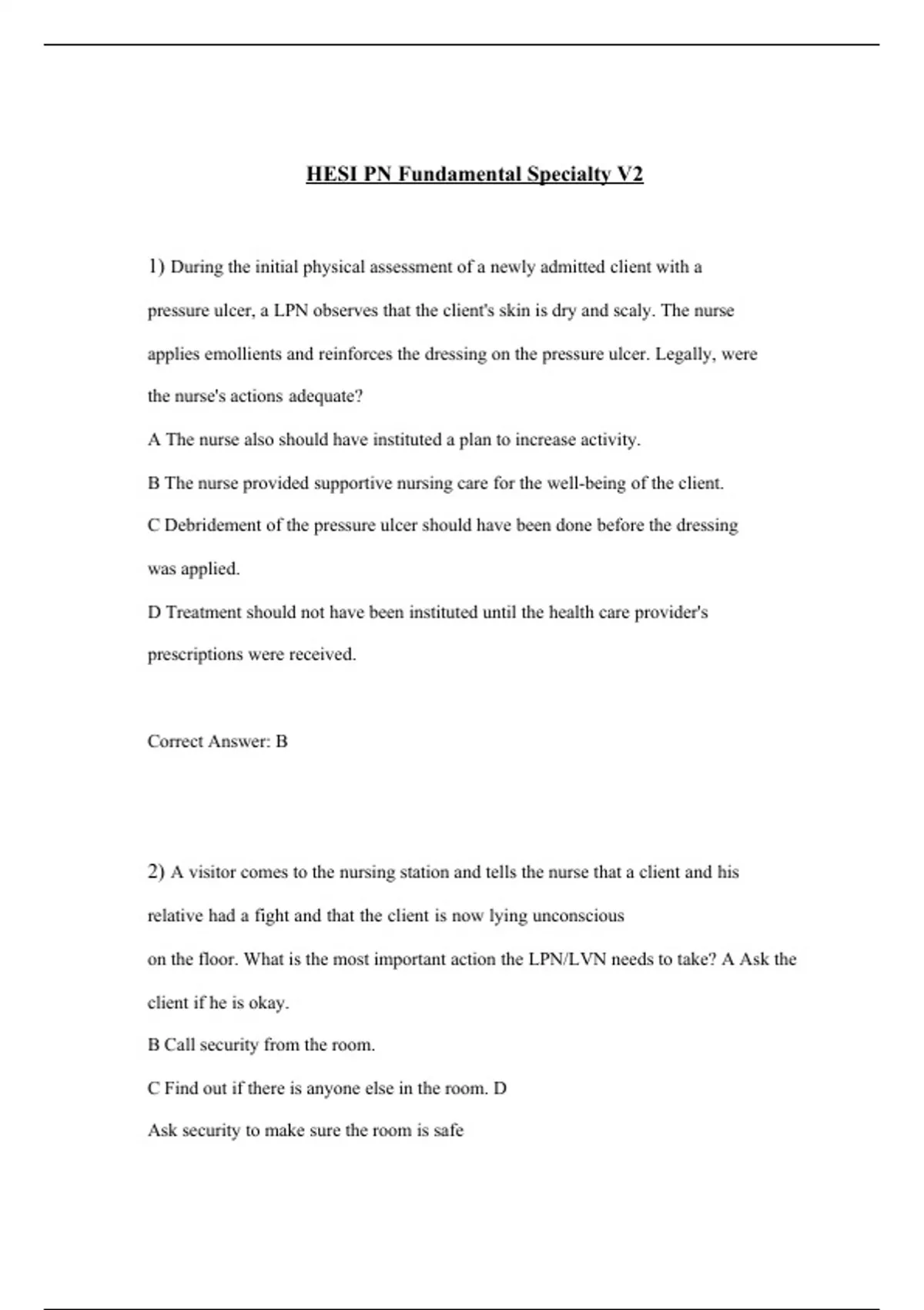 on the floor. What is the most important action the LPN/LVN needs to take? A Ask the