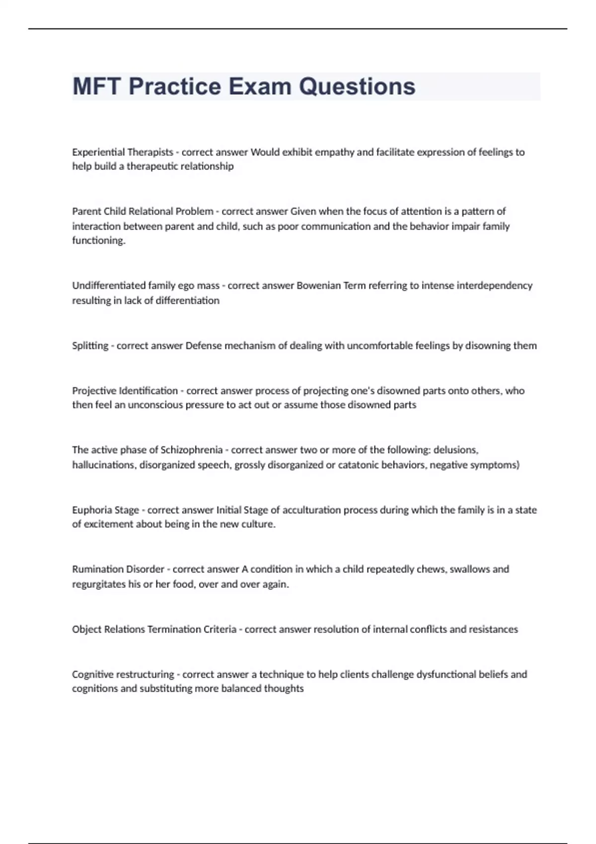 MFT Practice Exam Questions