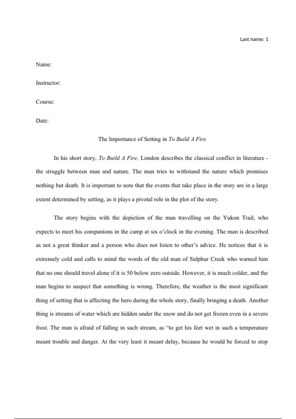 Paper details: Read Jack London's "To Build a Fire", and answer a question: "To what extent does setting determine what happens in the story?" Don't use any writer's words or ideas.