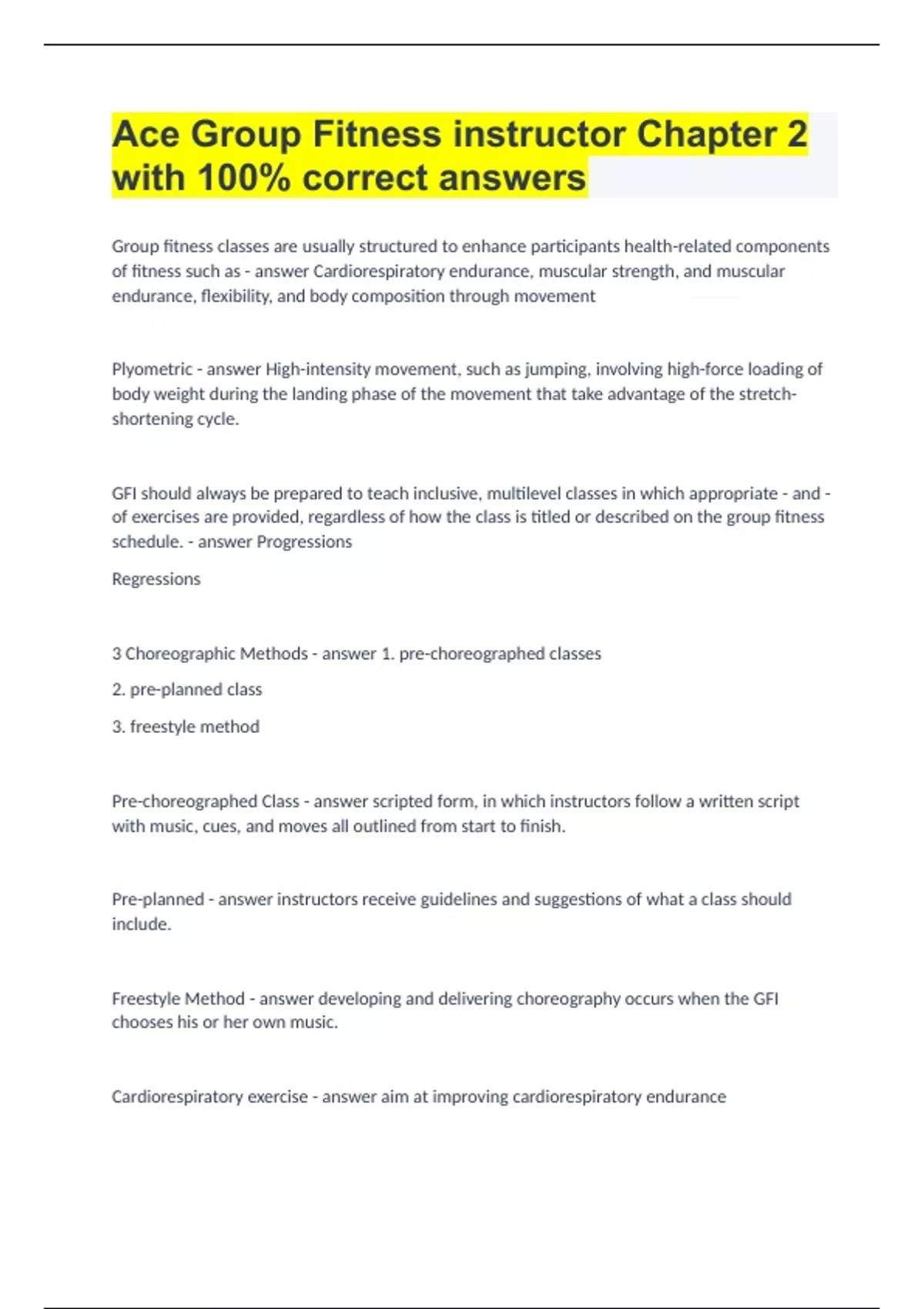 Ace Group Fitness instructor Chapter 2 with 100% correct answers