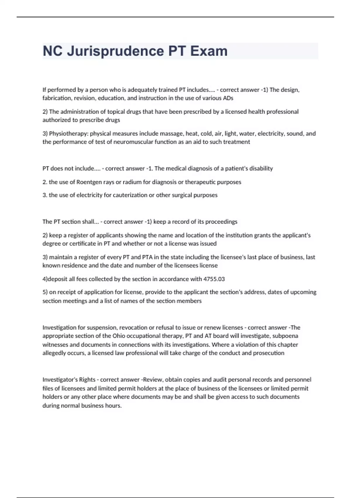 NC Jurisprudence PT Exam 2023 with 100% correct answers