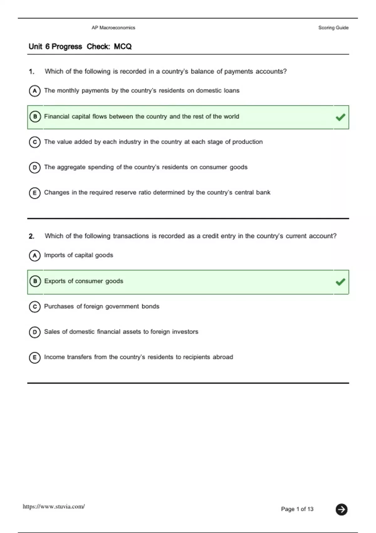 AP Macroeconomics Scoring Guide Unit 6 Progress Check MCQ.