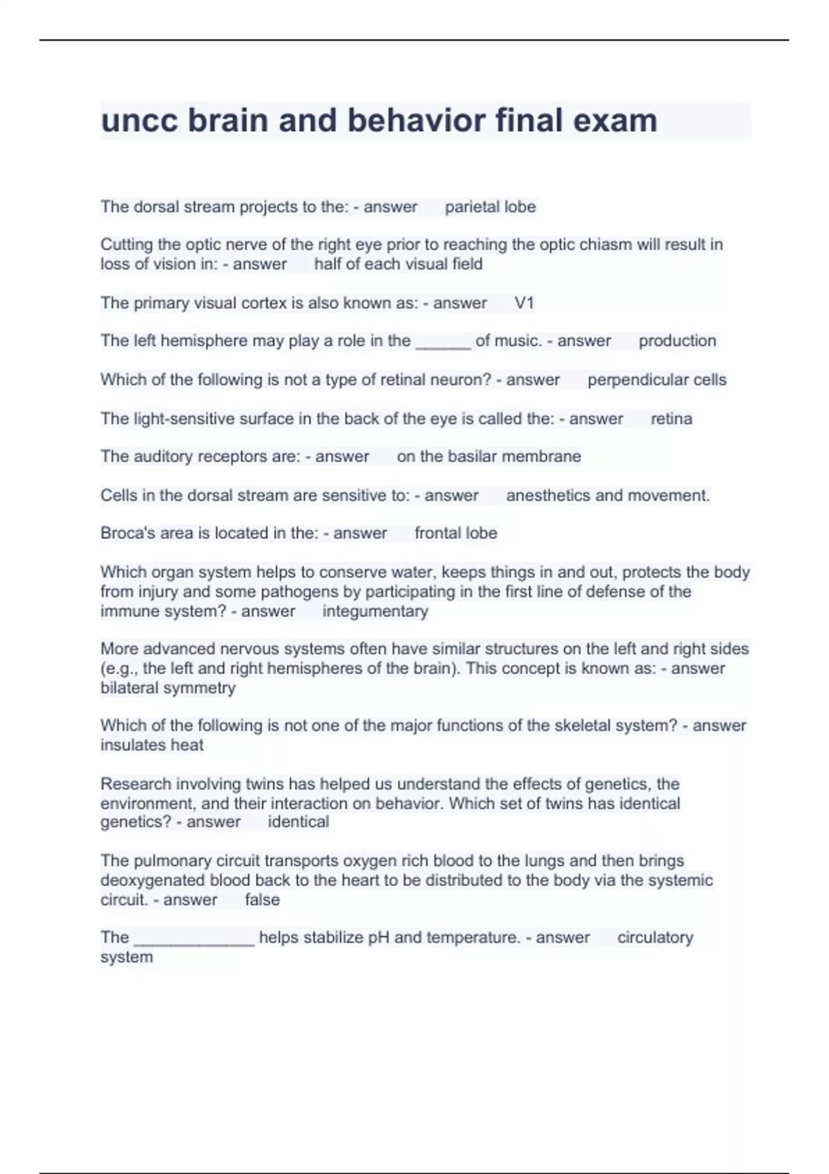 uncc brain and behavior final exam Questions and Answers ,fully solved