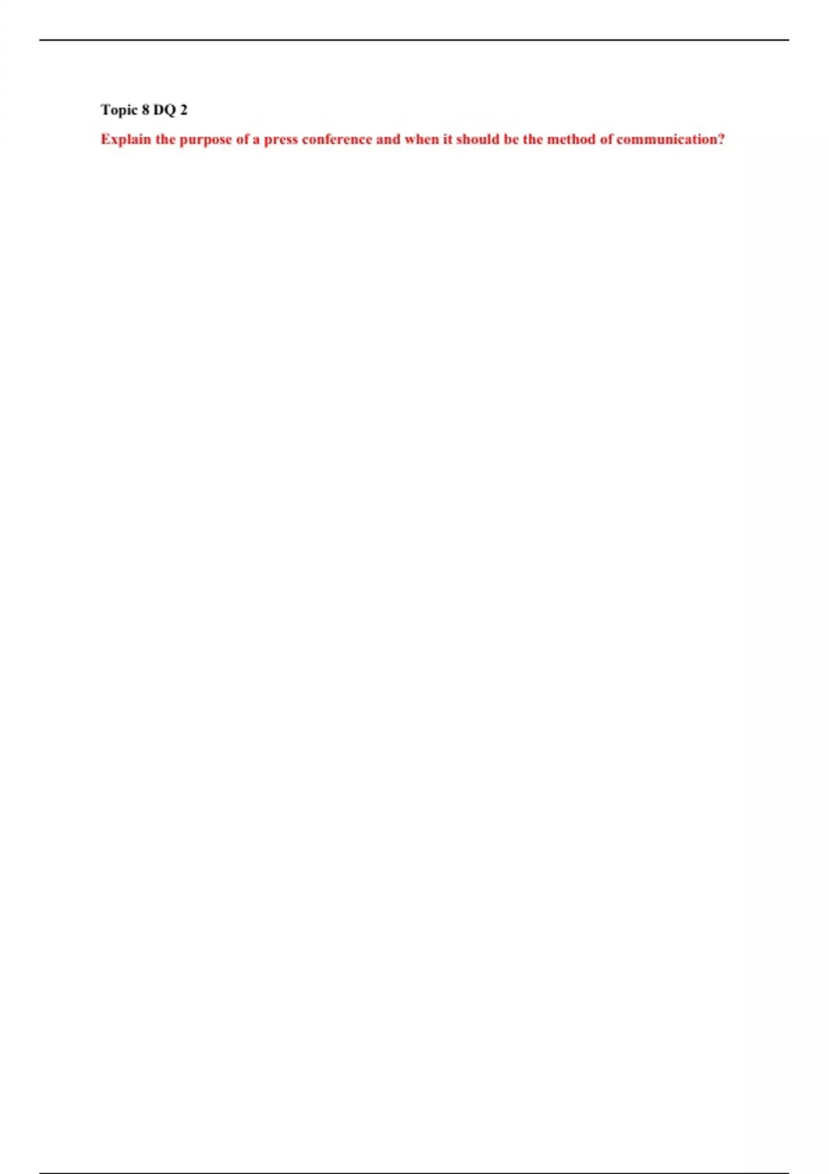 Topic 8 DQ 2 Explain the purpose of a press conference and when it should be the method of communication?