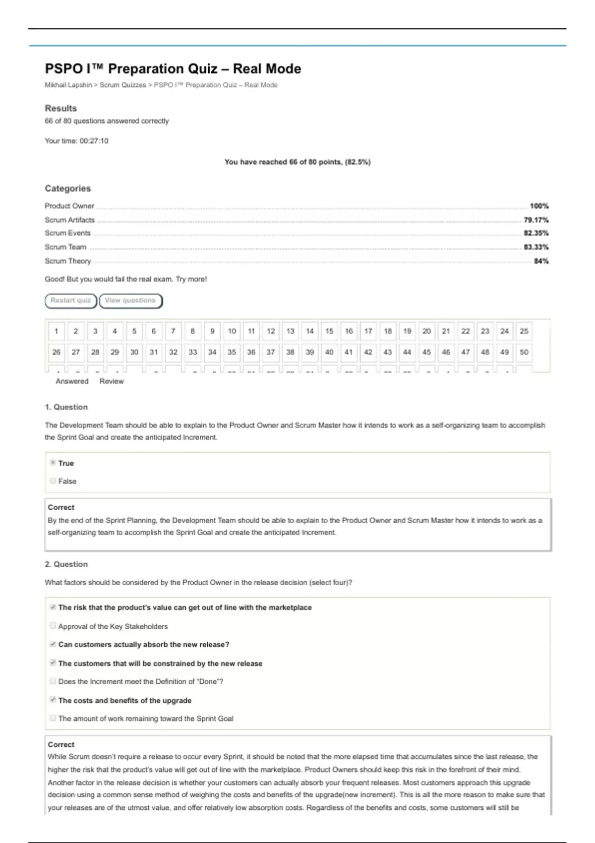 PSPO I™ Preparation Quiz - Real Mode - Mikhail Lapshin 2023.