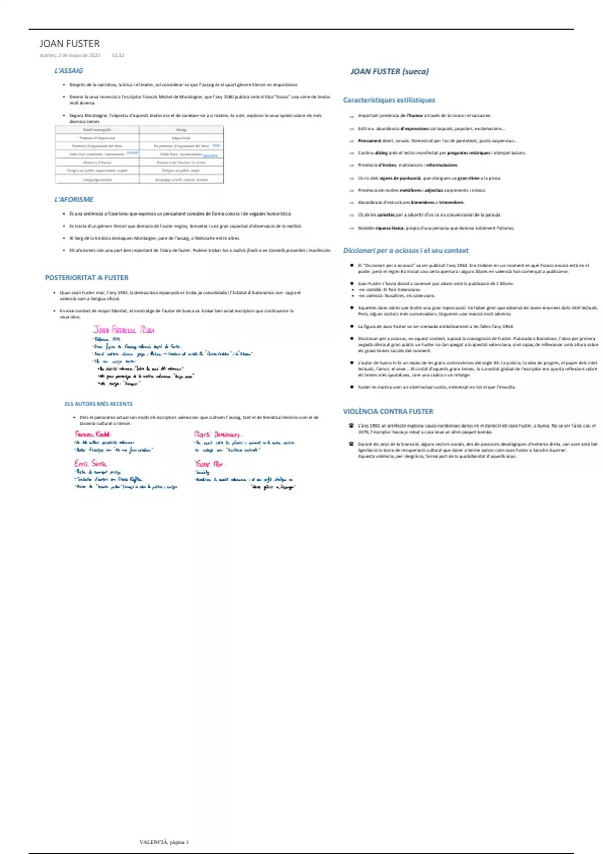 Summary Resumen/Esquema de Joan Fuster