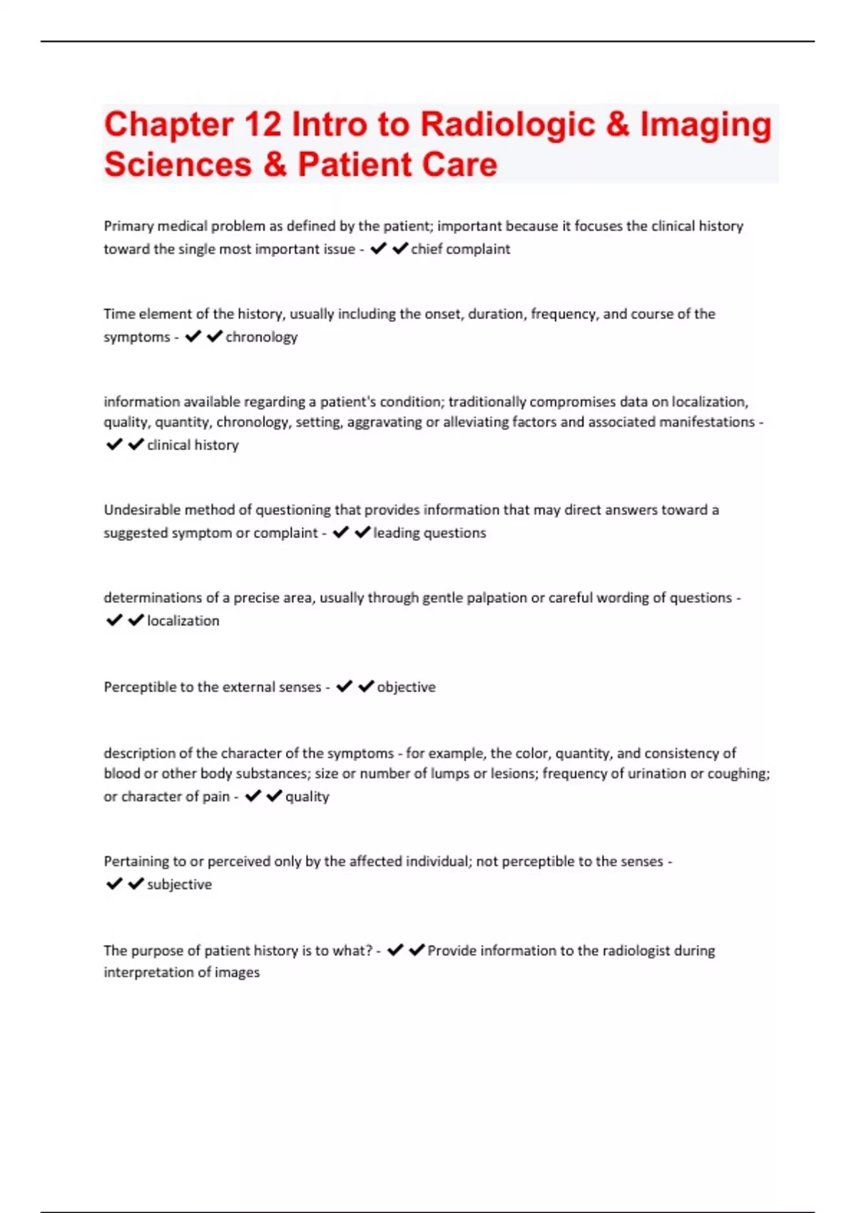 Chapter 12 Intro to Radiologic & Imaging Sciences & Patient Care Questions And Answers Rated A+