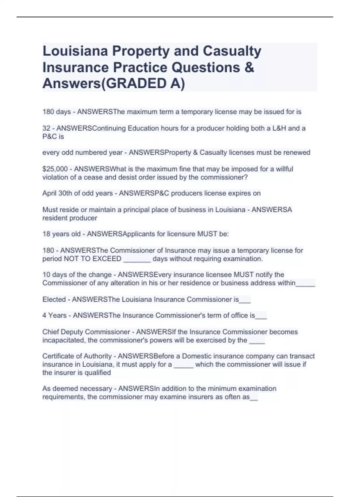 Louisiana Property and Casualty Insurance Practice Questions & Answers(GRADED A)