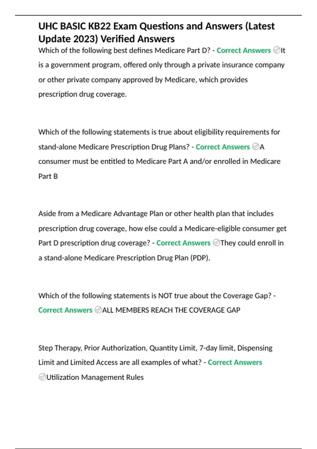UHC BASIC KB22 Exam Questions and Answers (Latest Update 2023) Verified Answers