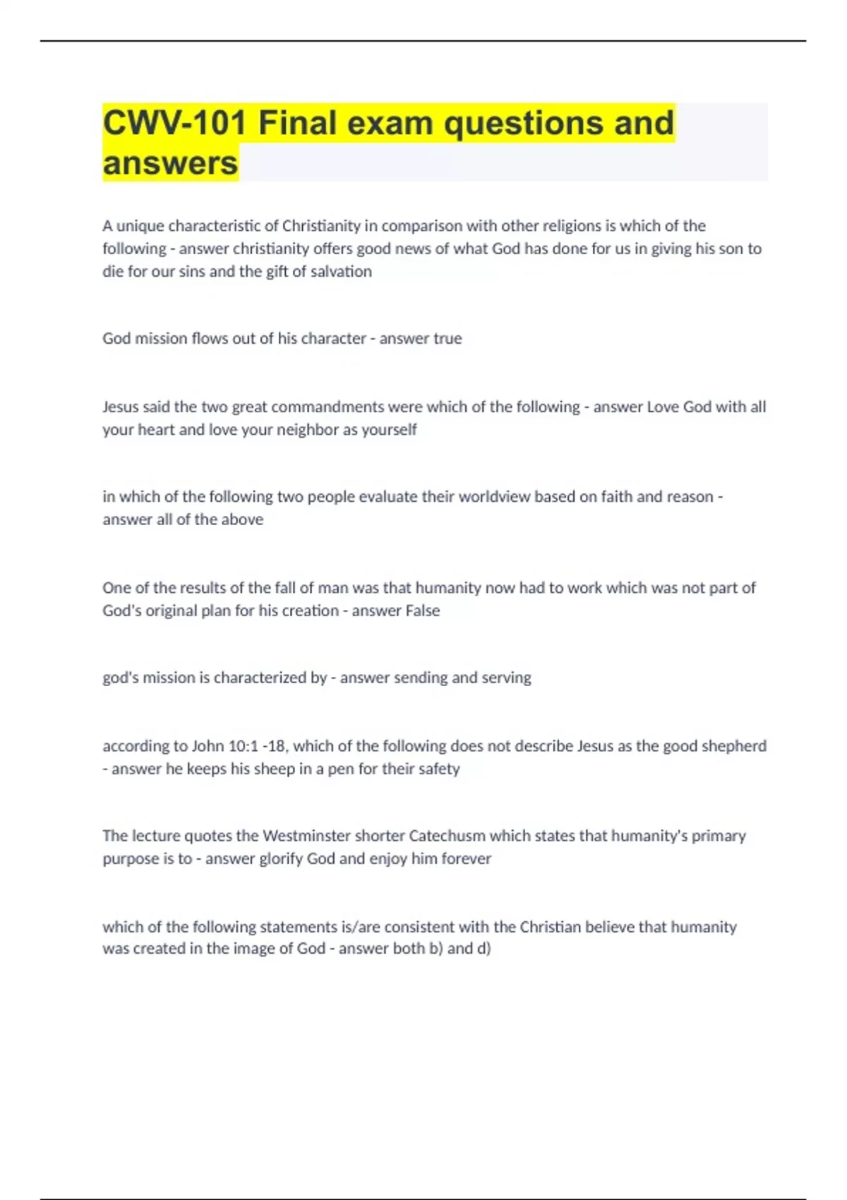 CWV-101 Final exam questions and answers
