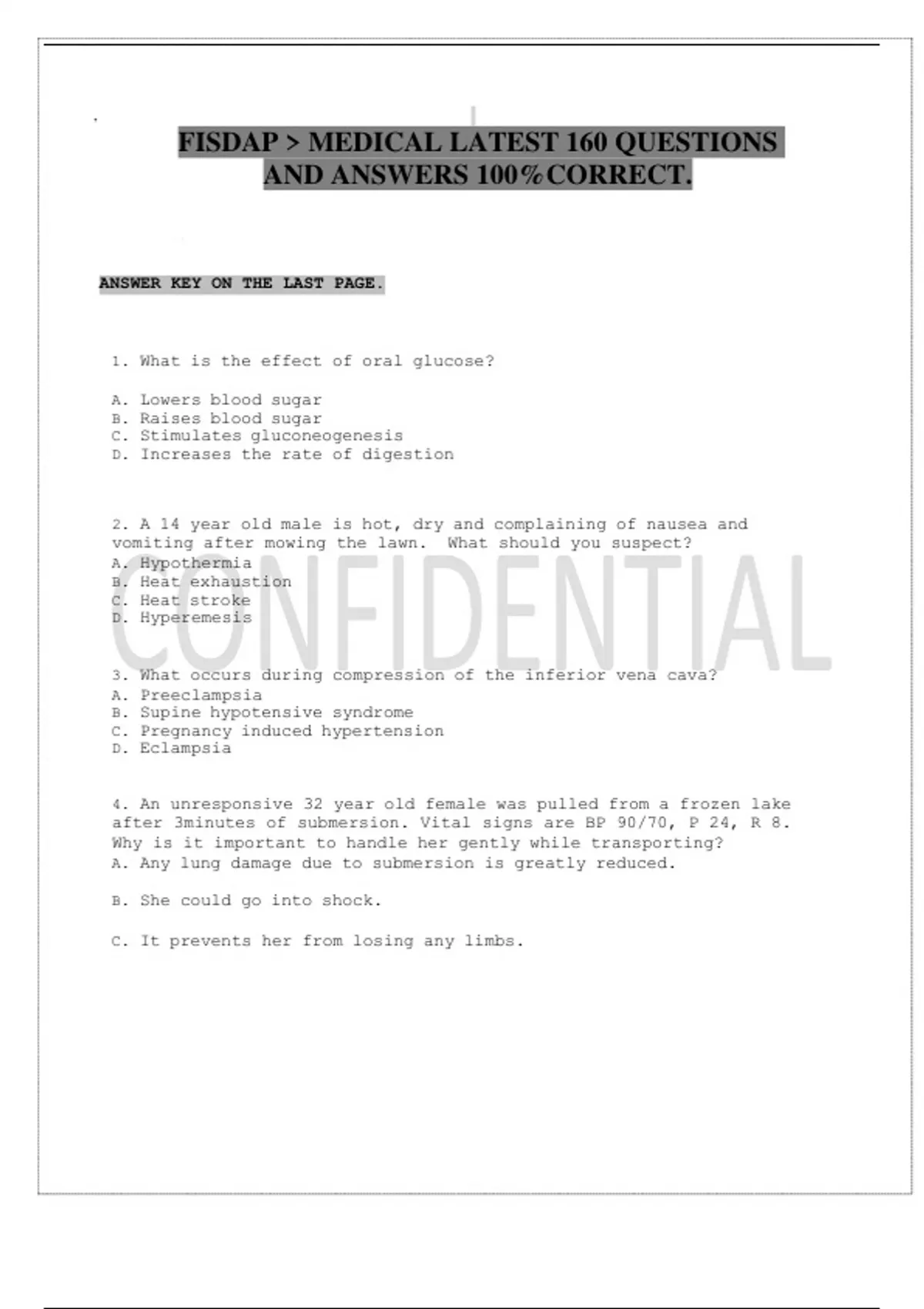 A nurse in a providers office is preparing to teach a middle aged adult client who has a new diagnosis of metabolic syndrome and an HbA1c of 6.5%. Which of the following medication should the nurse plan to teach the client about first? - CORRECT Metformin A nurse is reviewing a client laboratory results before administering furosemide 40 mg IV bolus. For which of the following values should the nurse with hold the medication and contact the provider? - CORRECT Potassium 2.5 mEq/L A nurse is preparing to administer the initial dose of penicillin G IM to a client. The nurse should monitor which of the following as an indication of an allergic reaction following the injection? - CORRECT Urticaria A nurse is caring for a client who has diabetes mellitus and is taking piogiltazole. The nurse should plan to monitor the client for which of the following adverse effects? - CORRECT Orthostatic hypotension A nurse is assessing a client who takes glipizide for the treatment of type two diabetes. Which of the following findings indicate effectiveness of the medication? - CORRECT HgbA1c 6.5%