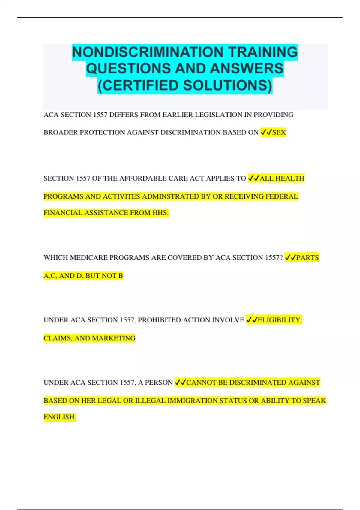 UNDER ACA SECTION 1557, A PERSON ✔✔CANNOT BE DISCRIMINATED AGAINST