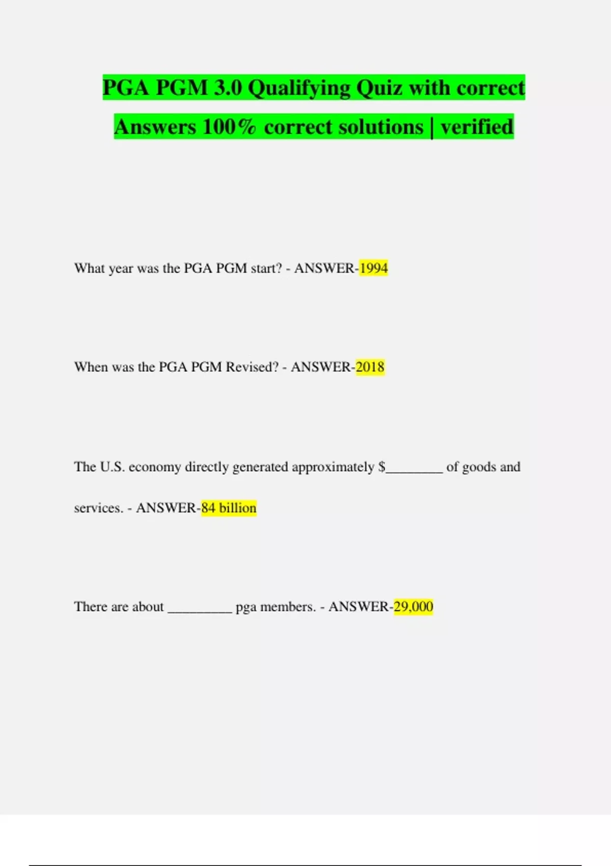 PGA PGM 3.0 Qualifying Quiz with correct Answers 100% correct solutions | verified