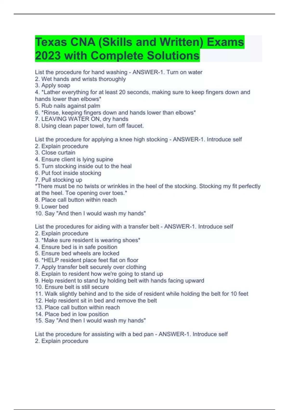Texas CNA (Skills and Written) Exams 2023 with Complete Solutions