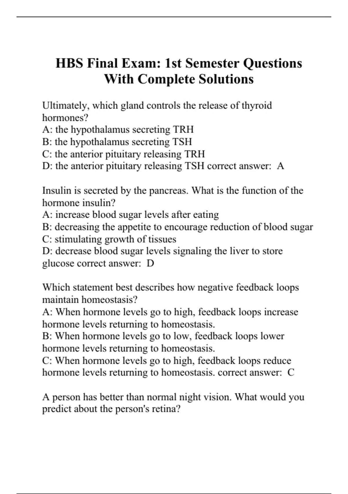 hbs final exam 1st semester questions with comple