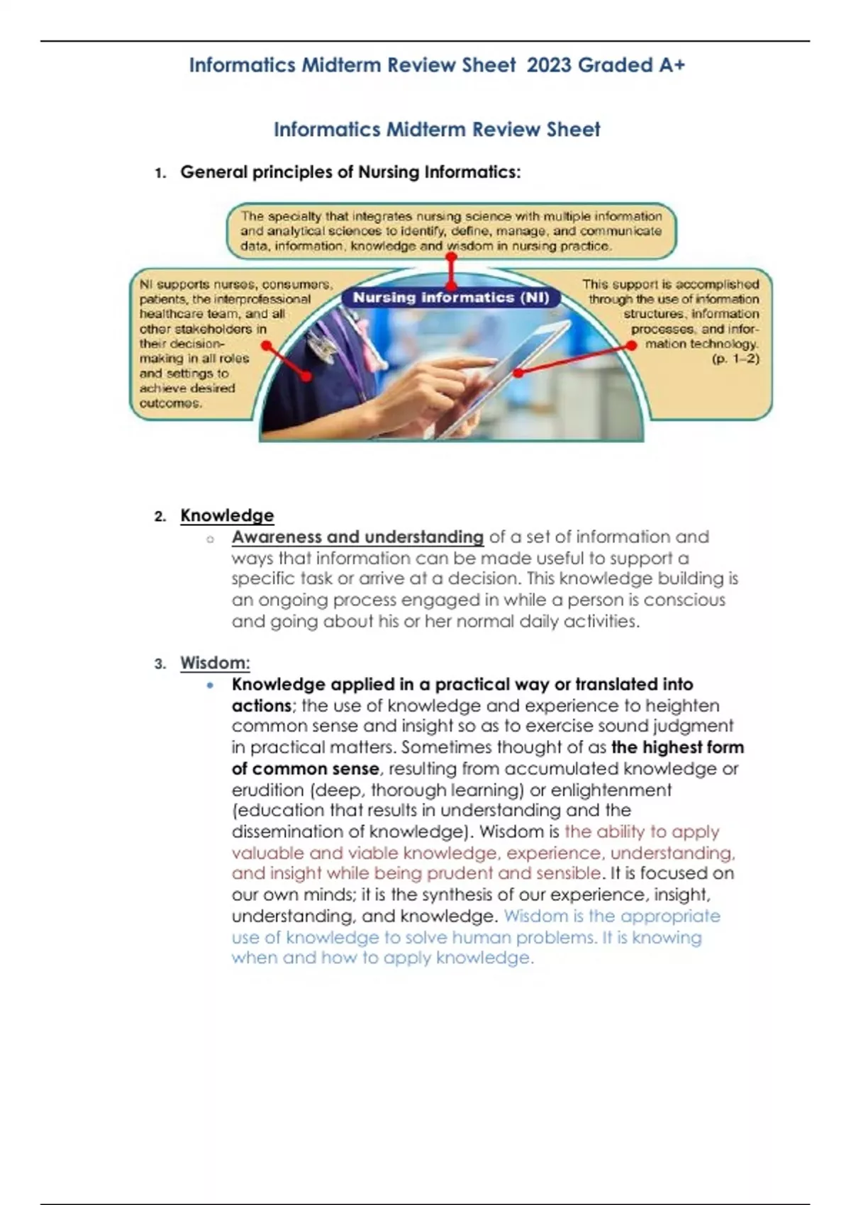 , Informatics Midterm Review Sheet 2023 Graded A+