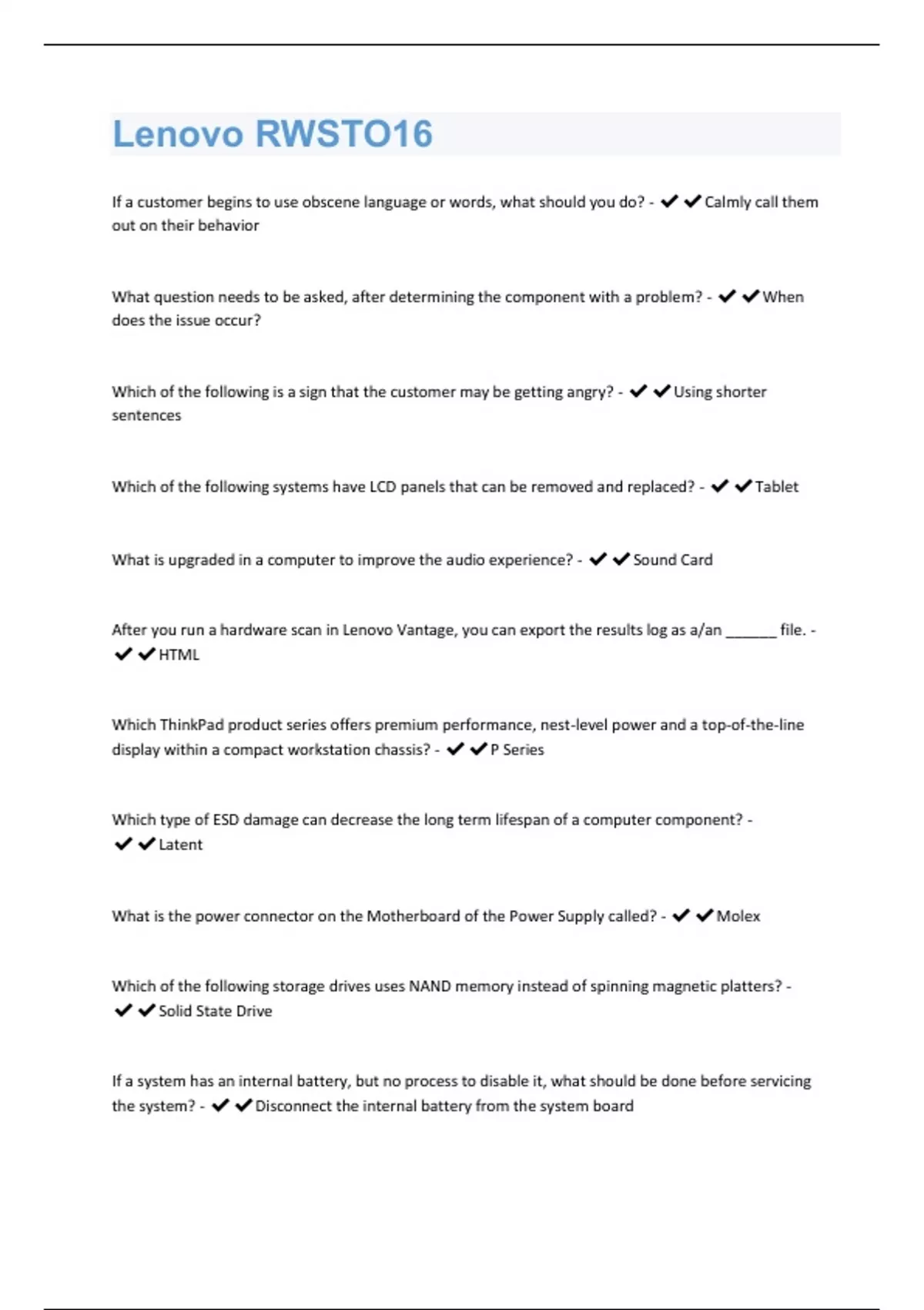 Lenovo RWSTO16 | 97 Questions and Answers 100% Verified