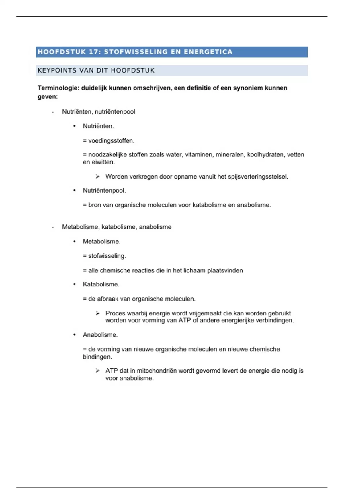 Volledige keypoint over stofwisseling en energetica.