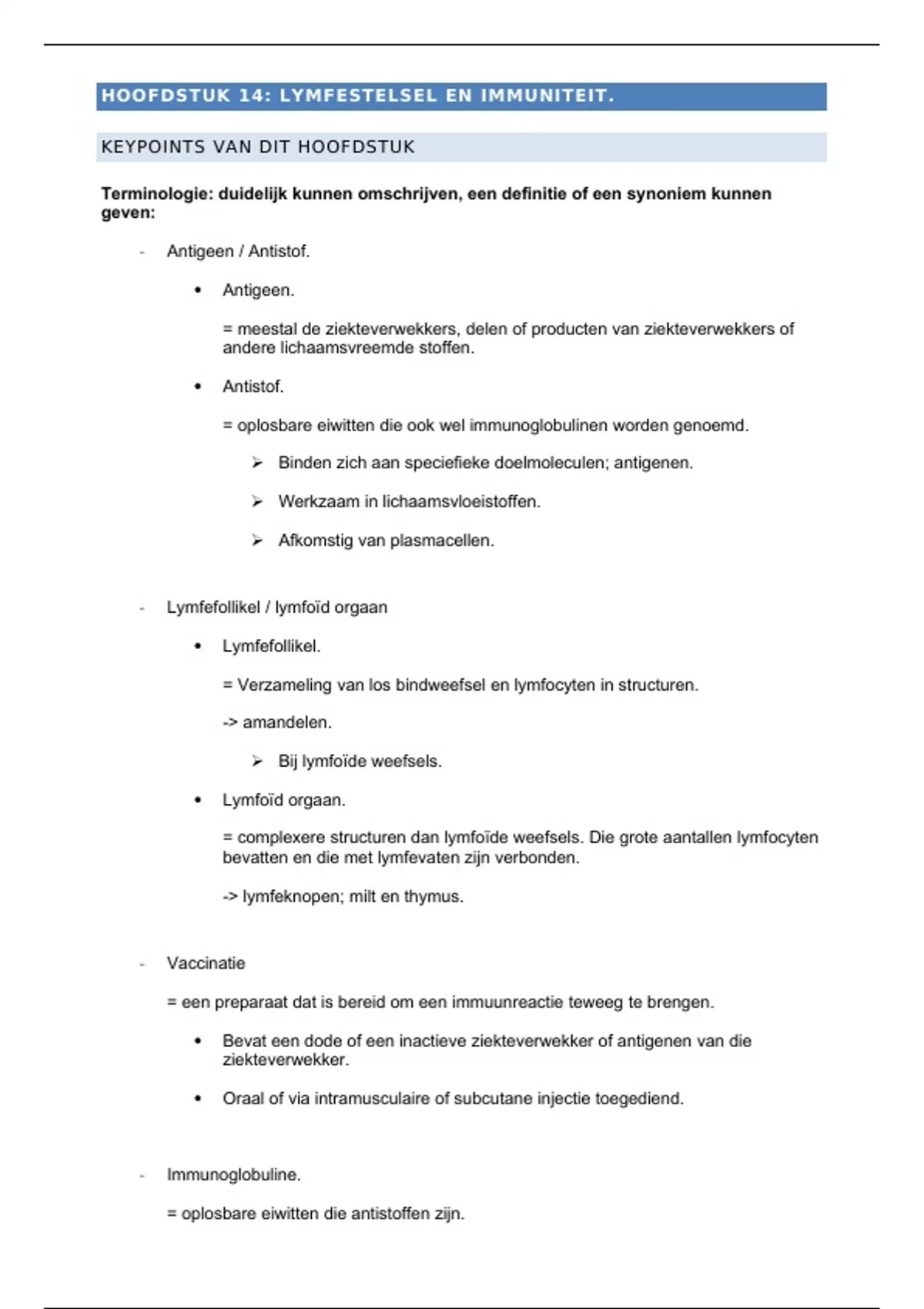 Samenvatting Keypoint Het lymfestelsel en immuniteit