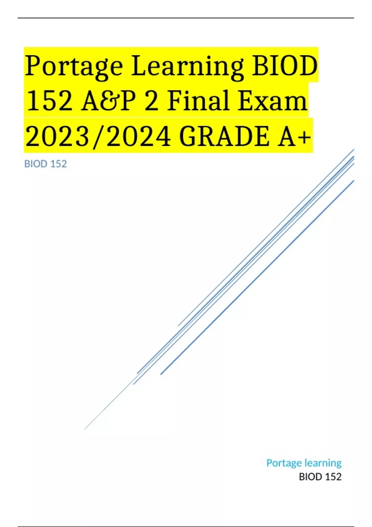 Portage Learning BIOD 152 A&P 2 Final Exam 2023/2024 GRADE A+