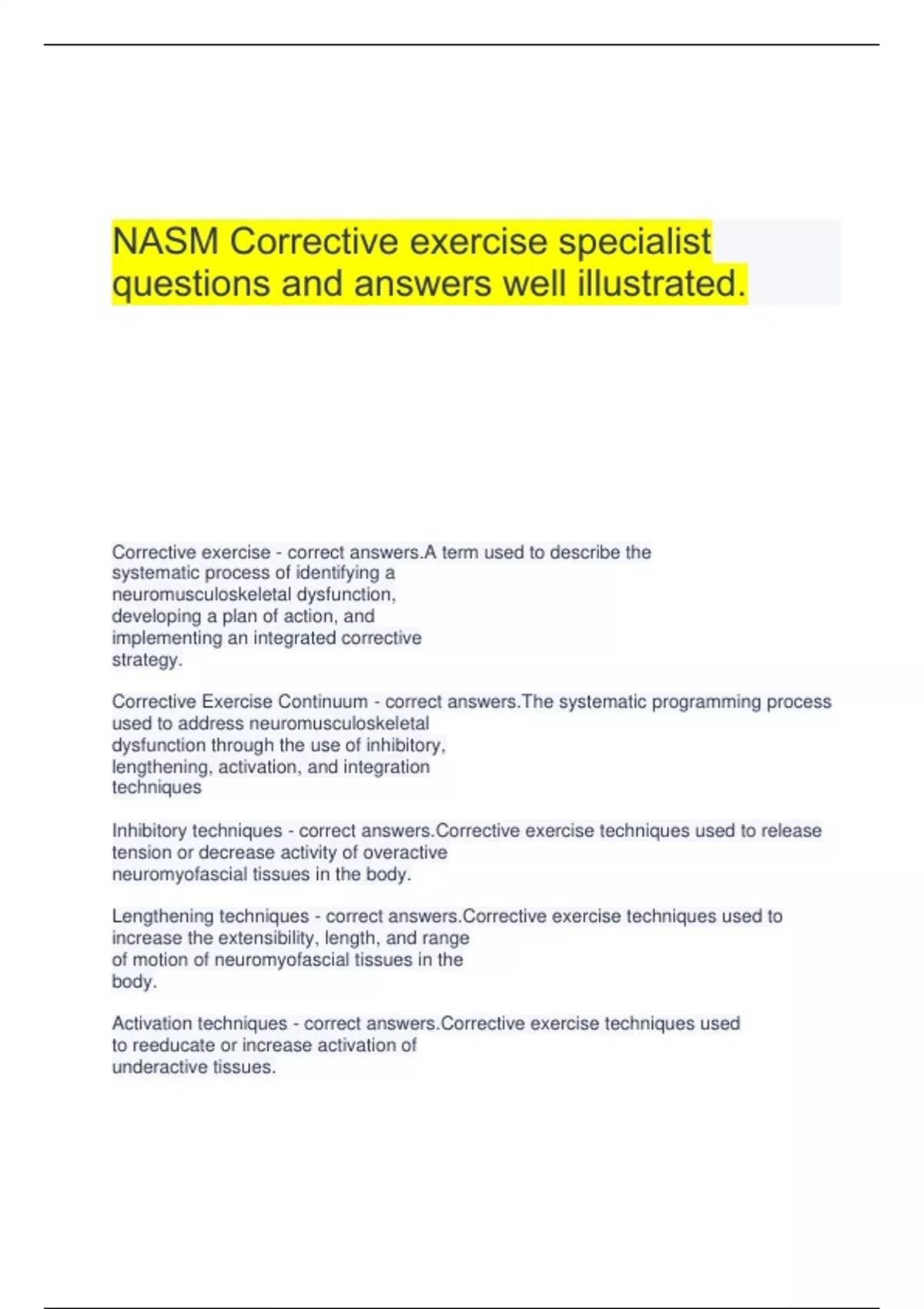 NASM Corrective exercise specialist questions and answers well illustrated.