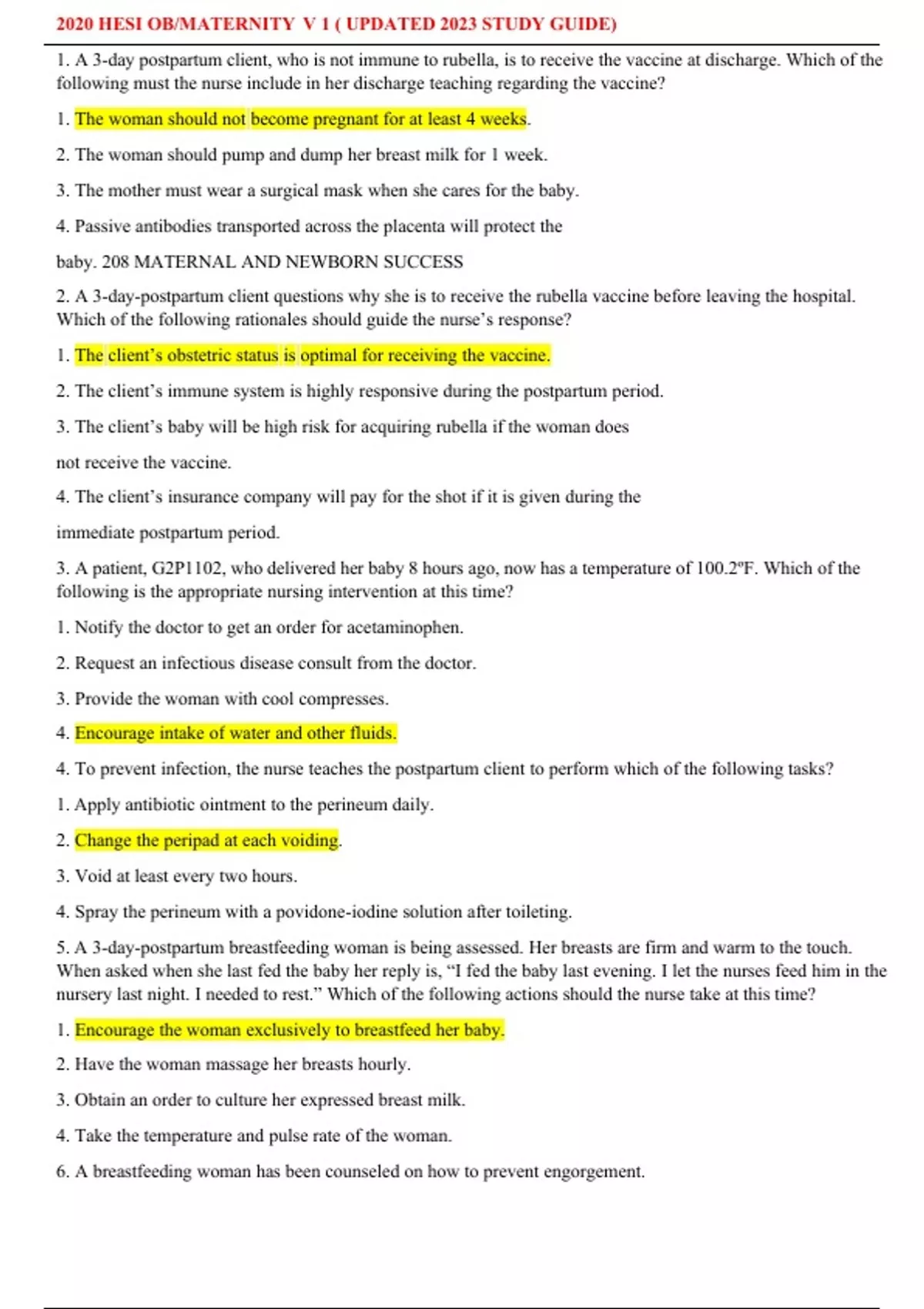 2020 HESI OB-MATERNITY V 1 ( UPDATED 2023 STUDY GUIDE)
