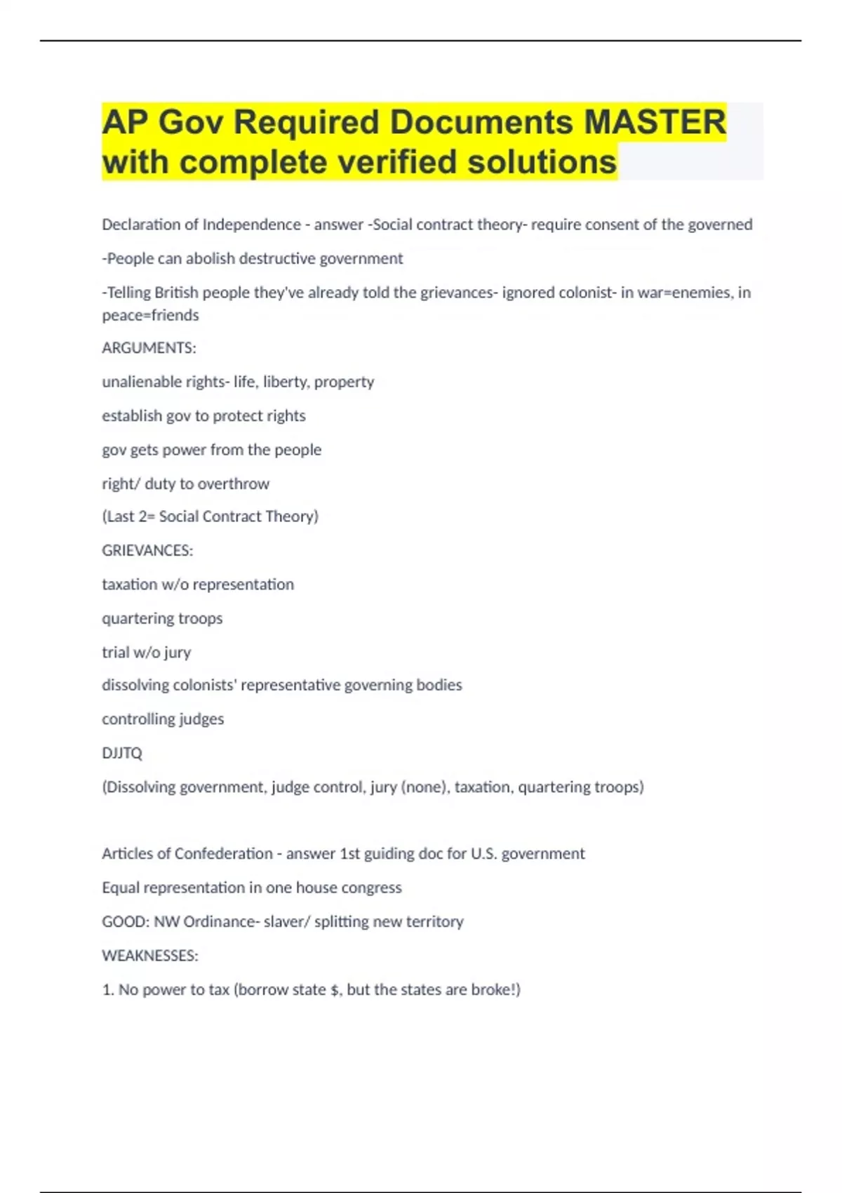 AP Gov Required Documents MASTER with complete verified solutions