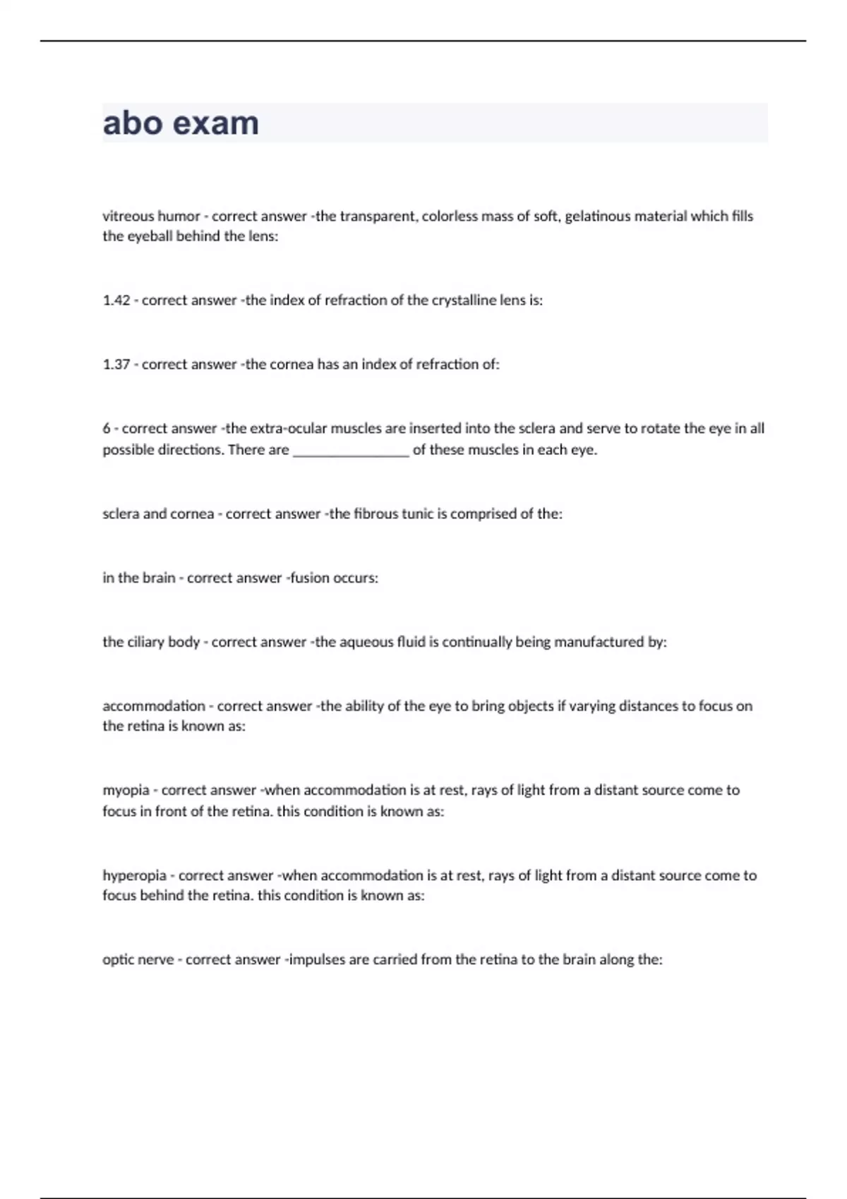 ABO exam 2023 with 100% correct answers