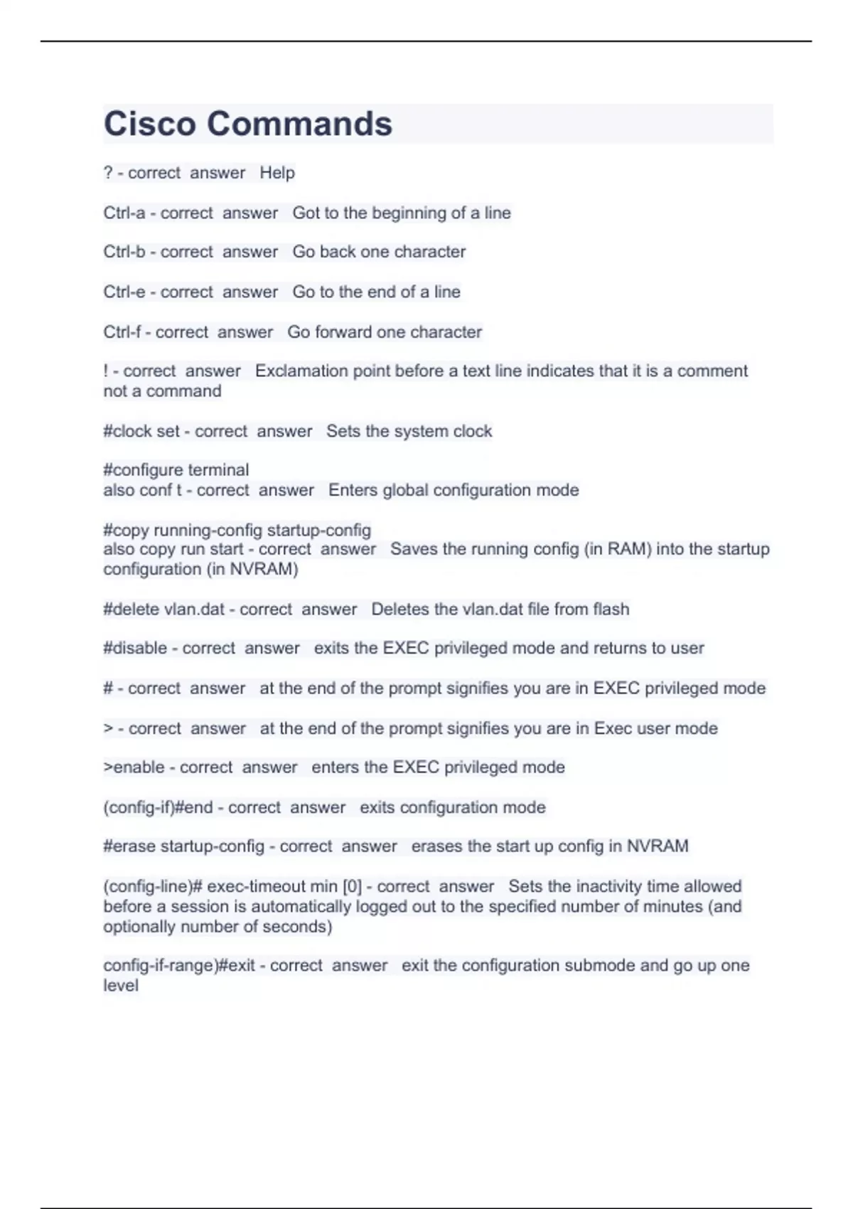 Cisco Commands Question and answers rated A+ 2023