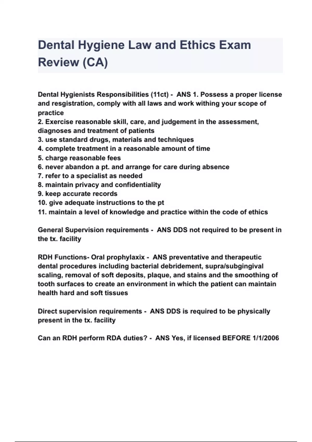 Dental Hygiene Law and Ethics Exam Review (CA) QUESTIONS & ANSWERS (A+ GRADED 100% VERIFIED)